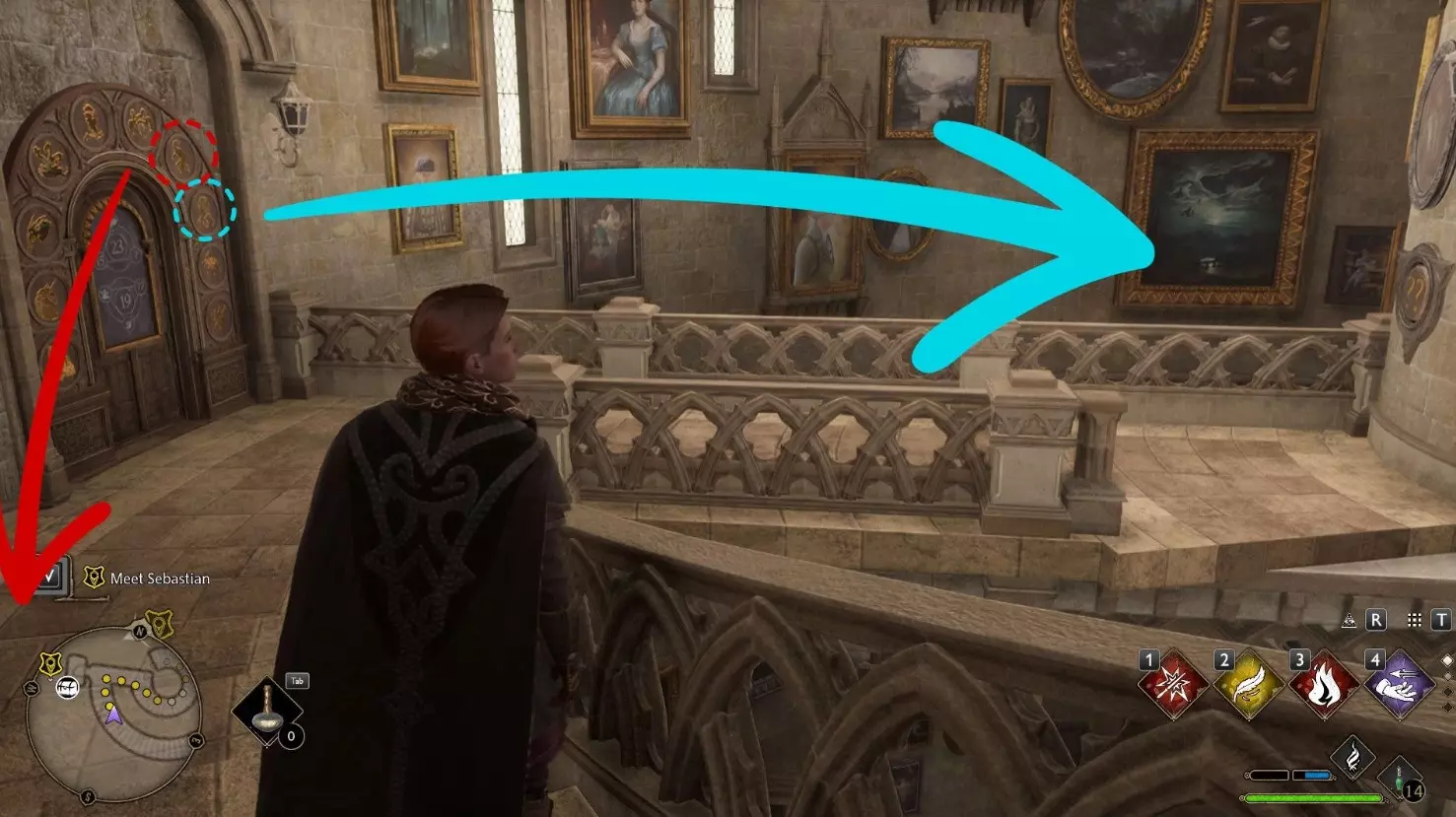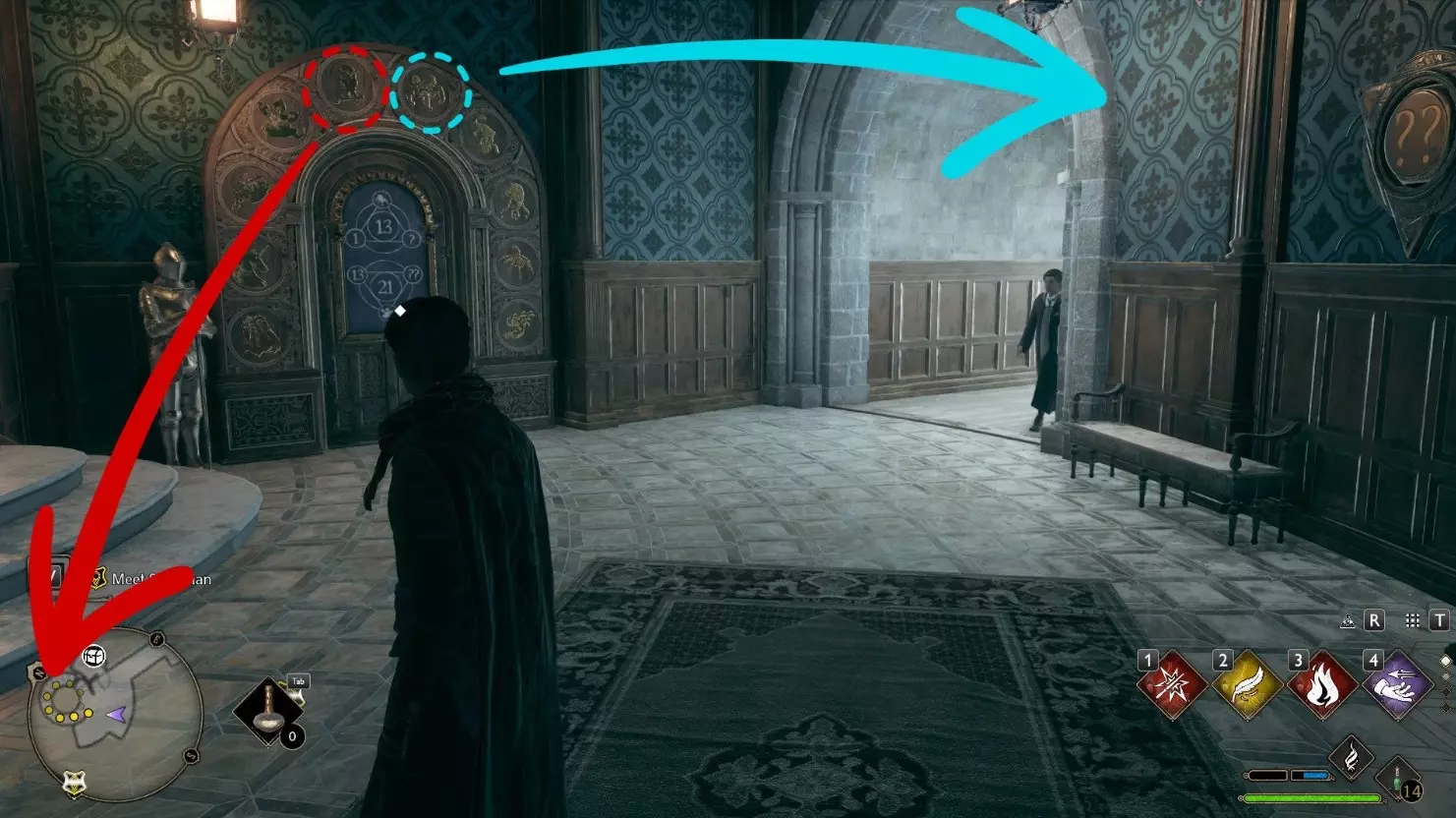 如何在《霍格沃茨之遗》中找到立方体谜题的提示 在《霍格沃茨之遗》中,门上带有数字的谜题是最困难的谜题类型之一,这些谜题可以在城堡的不同区域遇到。许多玩家都被这些谜题难住了,因此现在我们来详细讲解解决它们的方法。 首先,给那些想自己寻找答案但陷入困境的玩家一点提示。这类谜题的解法提示可在预言学教室附近的图书馆附属建筑中找到。如果您只关心解法,可以直接向下翻阅。要打开门,并非必须找到这个提示。首先,移动到城堡内的指定位置,或者通过主楼梯上楼,然后走右侧楼梯到达塔顶。