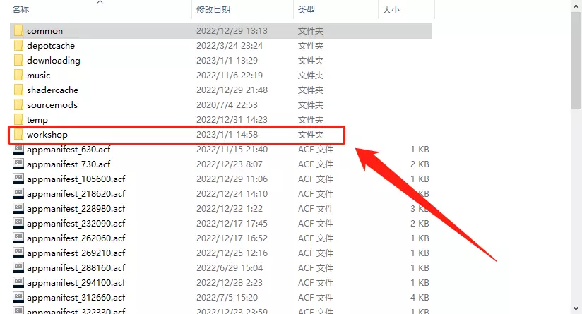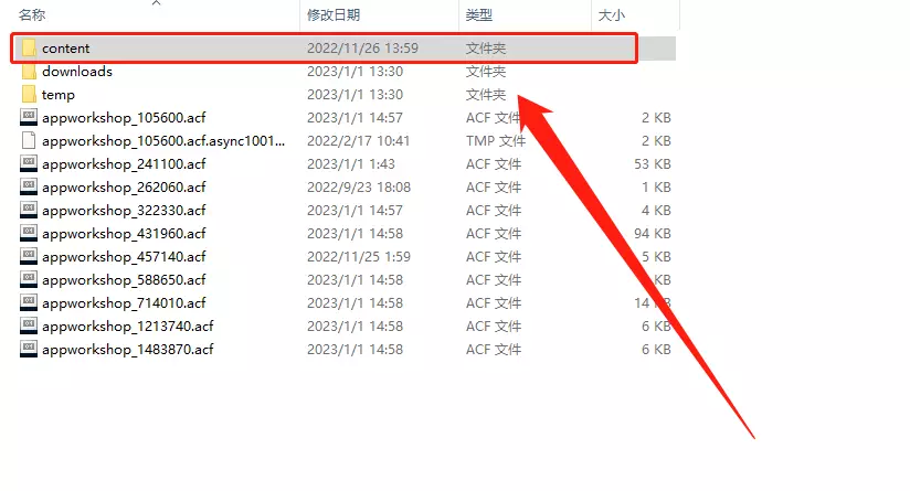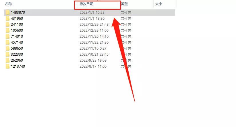第三步 找到词条 我们返回到刚刚加入的“content”文件夹,按照时间顺序排列(点击“修改日期”即可)。由于刚刚订阅了新内容,第一个就是【你画我猜】的创意工坊内容,所有【你画我猜】的订阅内容都在里面。