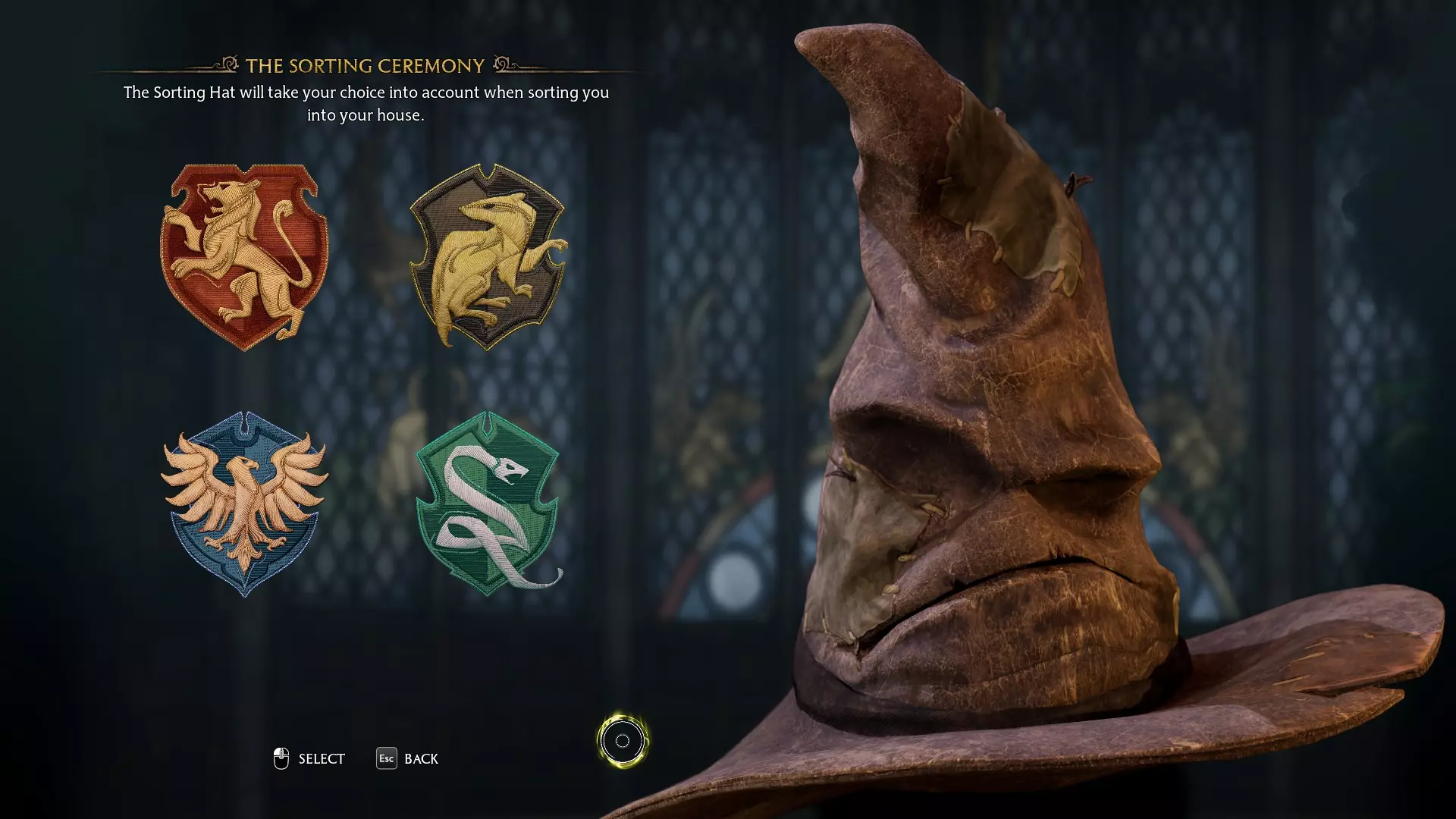 你要做的第一件事是选择你的学院。你的选择不会影响分院仪式,所以你可以选任何你喜欢的学院,但要注意,一旦选择就无法更改了。