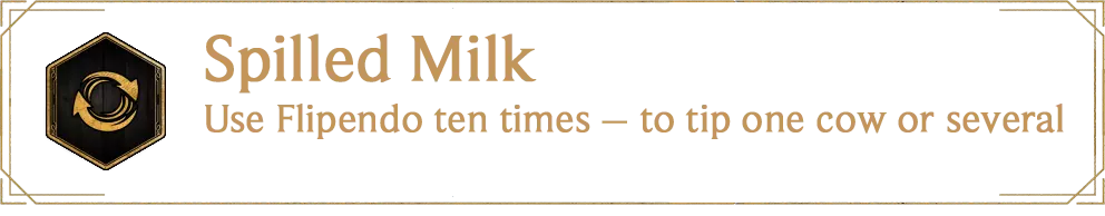 感谢XEALEEN。然后只需选择任意一头牛,对其使用【弗立维】咒语,直到解锁成就。