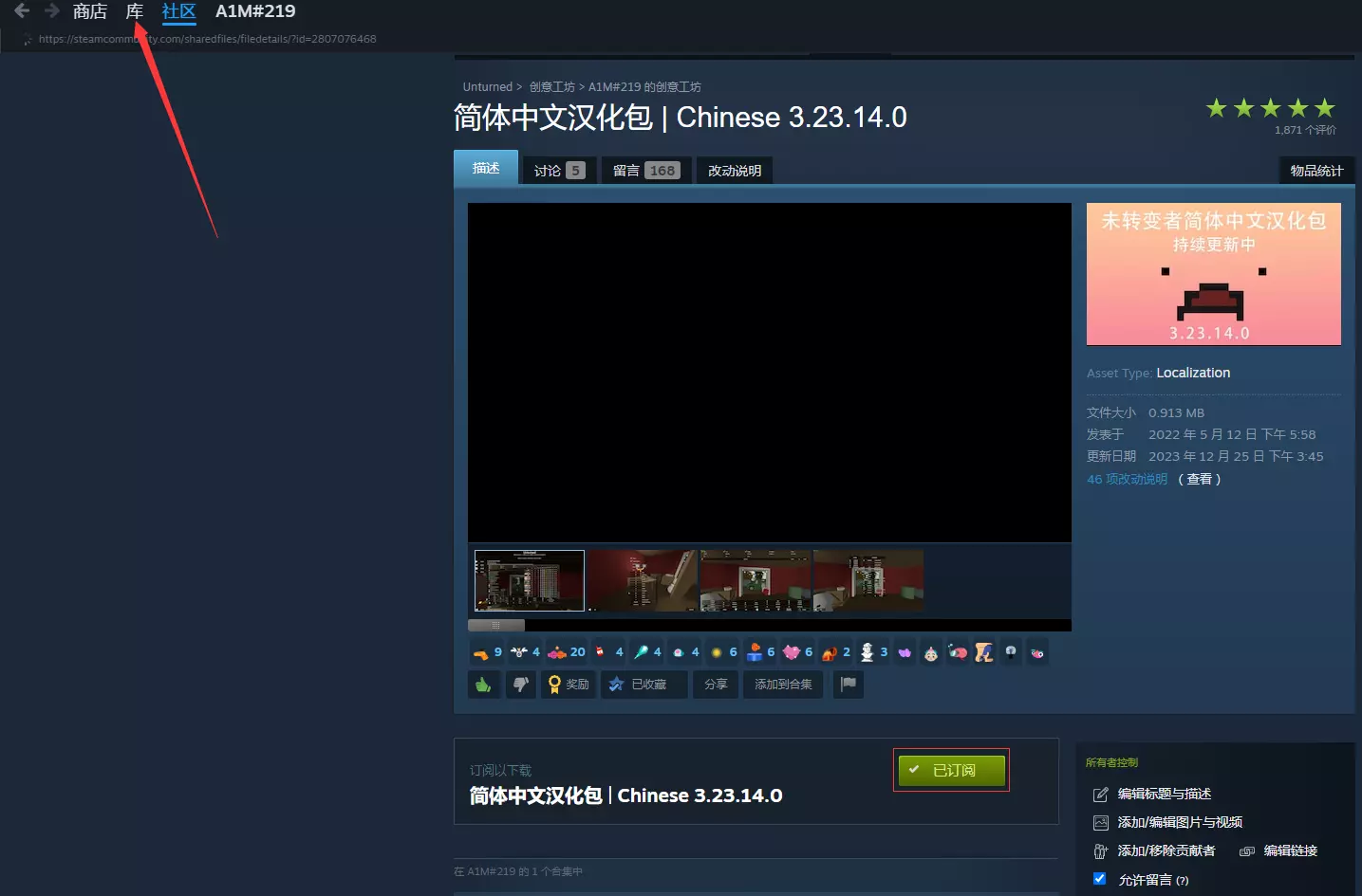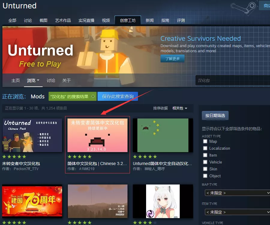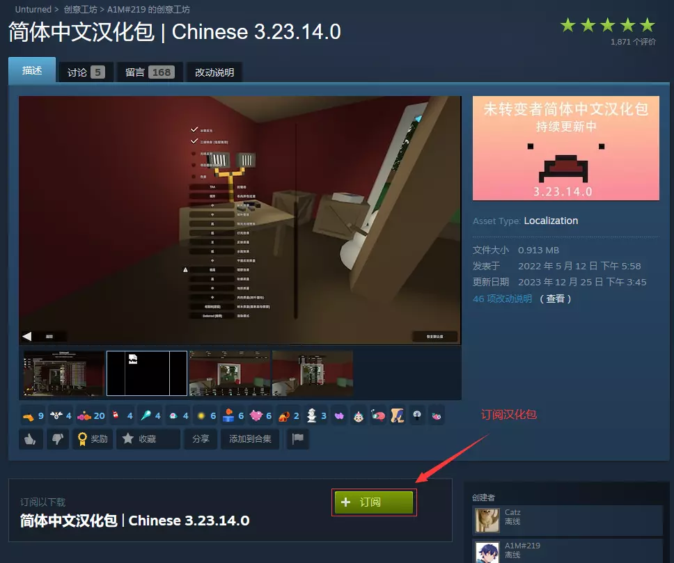1. 订阅和下载汉化 选择一:从创意工坊订阅汉化包 步骤一:创意工坊搜索汉化