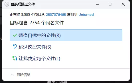 4. 如果你是第一次安装汉化,可以跳过此步骤;若为第二次安装,会出现提示,选择替换即可。