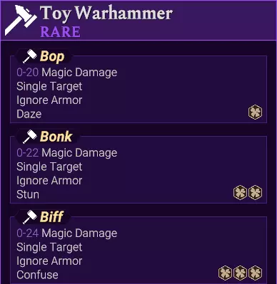 【忽略抗性】是一种完美效果,并非溅射模式。 完美命中时,目标对魔法伤害的抗性视为0。这与【忽略护甲】的文本描述一致。 它应该显示为【忽略抗性】。在《命运之手》第一部中,这类武器确实存在。而在《命运之手2》中,目前还没有吗? 其攻击名称的关键词是【Zap】。 这适用于所有带有Zap攻击的魔杖,这些攻击会造成魔法伤害。 次级/普通/强效魔杖:Zap 小鬼魔杖:火焰Zap 次级冰魔杖:冰冷Zap 闪电枝、次级闪电魔杖:闪电Zap 这也适用于玩具战锤的所有攻击。