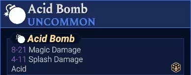 B. 带有武器攻击关键词【炸弹】: 酸炸弹、毒炸弹、火焰炸弹和水炸弹具有T型溅射范围,并附带【污染地砖】效果。 完美命中时,它们会用自身元素污染所有T型溅射范围内的目标地砖。 地砖污染通常持续2回合后失效。 一个地砖可以同时存在多种污染效果。 例外1:潮湿与火焰效果会立即相互替换,两者中后施加的效果优先生效。 例外2:潮湿效果会在1回合内清除混乱效果。 任何友方或敌方单位在回合结束时处于被污染地砖上,都会获得该地砖的所有污染效果作为异常状态(详见百科)。每种异常状态各有2回合持续时间,与地砖污染的持续时间分开计算。净化地砖即可驱散地砖上的污染效果。净化卷轴具有T型范围效果,并在其覆盖的格子上标记净化效果: 驱散其覆盖格子内的所有腐化效果 2回合内免疫腐化 任何友方单位在净化格子内结束回合时,获得净化增益: 驱散友方单位身上的所有异常状态(临时负面效果,详见百科) 2回合内免疫异常状态 任何具有净化能力的武器(在完美释放时)拥有与卷轴相同的效果。 哥布林炸弹同样具有(腐化格子)效果并附带混乱,但不采用T型范围模式。