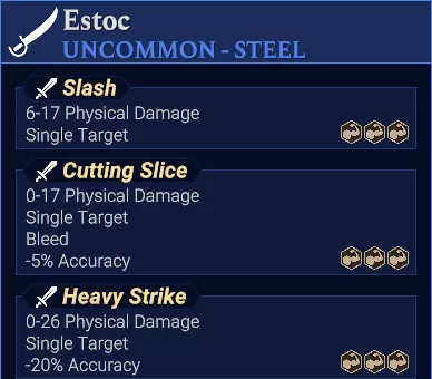 本指南将介绍: + 武器的溅射伤害模式 + 各模式对应的武器技能图标 + 各模式对应的攻击名称关键词 武器溅射模式、图标及攻击名称关键词 《命运之手2》引入了2x4的战术战斗地图。 武器现在拥有几何形状的溅射伤害范围。 这些信息通过以下三种方式显示: A. 武器技能下方的图标 B. 武器攻击名称中的关键词 【按住Shift键可切换卡片视图】 C. 武器技能描述文本中的语句 但目前A和C需要通过按住Shift键切换卡片视图才能分别查看。 我们无法同时看到图标和技能描述文本。这已经构成了一个需要解决的谜题: + 已知卡牌正面有一组图标,我们知道每个图标都与卡牌背面的一个或多个攻击或技能形成1:1(或m:n)的对应关系。 - 但你仍然不知道哪个图标具体对应哪个技能。 我们可以通过学习通常与图标匹配的卡牌文本短语来部分解决这个问题。 本指南提供了一些关于匹配A与B和C的精炼知识。 此信息目前未收录在百科全书中,也未出现在任何游戏内卡牌或弹窗中。 游戏内教程确实会简要突出显示武器图标并描述其伤害溅射模式,但每种图标仅在你游戏中首次见到时显示一次。 也许后续的热修复会使本指南变得多余。 在此之前,希望你能喜欢! v1.0 2023/11/12 v1.1. 2023/11/16:新增【重击】;【忽略抗性】。 v1.2 2023/11/23:新增【溅射(污染地格)】;【溅射(可瞄准空地)】;本版本日志。 单体目标 单体目标显示为白色六边形。