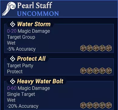粗劣哥布林炸弹仅为单体目标(并污染1格) 哥布林炸弹为列攻击(并污染2格) B.武器攻击关键词【风暴】表示2×3范围攻击,若带有附加异常状态的元素,则附带(污染格子)效果。 小鬼魔杖:火焰风暴(燃烧) 冰之法术书/冰之魔典:寒冰风暴(冻结) 闪电法术书:电击风暴(电击) 水之法术书/水之魔典、珍珠法杖:水流风暴(潮湿) 野性法杖:混沌风暴(混沌效果=上述所有效果,随机触发) 守护之书:净化风暴(立即生效,驱散范围内所有增益效果) 溅射(可瞄准空地) 与【溅射】具有相同图标和文本,具体参见【溅射】。 目前无法仅通过图标或文本区分【溅射(可瞄准空地)】。