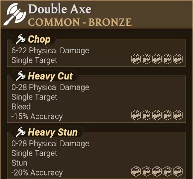 传奇火焰剑:重火力打击 -20% 魔法法杖、巨型法杖:重射线 -15% 冰之权杖、珍珠法杖:重冰/水箭 -20% 巨型法杖:死亡射线 -25% 女王长弓(橡木)、巨弓:重拉弓 -20% 女王长弓(枫木):重混沌射击 -20% 备注: 如果不考虑完美效果,重击平均伤害更高。 大多数英雄的主武器属性为80。 普通攻击平均伤害为1.0倍伤害的0.80,即0.80×普通最大伤害。 精准度-20%的重击实际武器属性为60。 此时平均伤害为1.5倍伤害的0.60,即0.90×普通最大伤害。 因此,重击具有更高的平均伤害和更高的峰值伤害(在良好判定时)。 但重击触发完美判定的概率更低。部分攻击带有【重型】图标,存在惩罚效果,但没有关键词,且它们的名称过于普通,无法成为关键词。