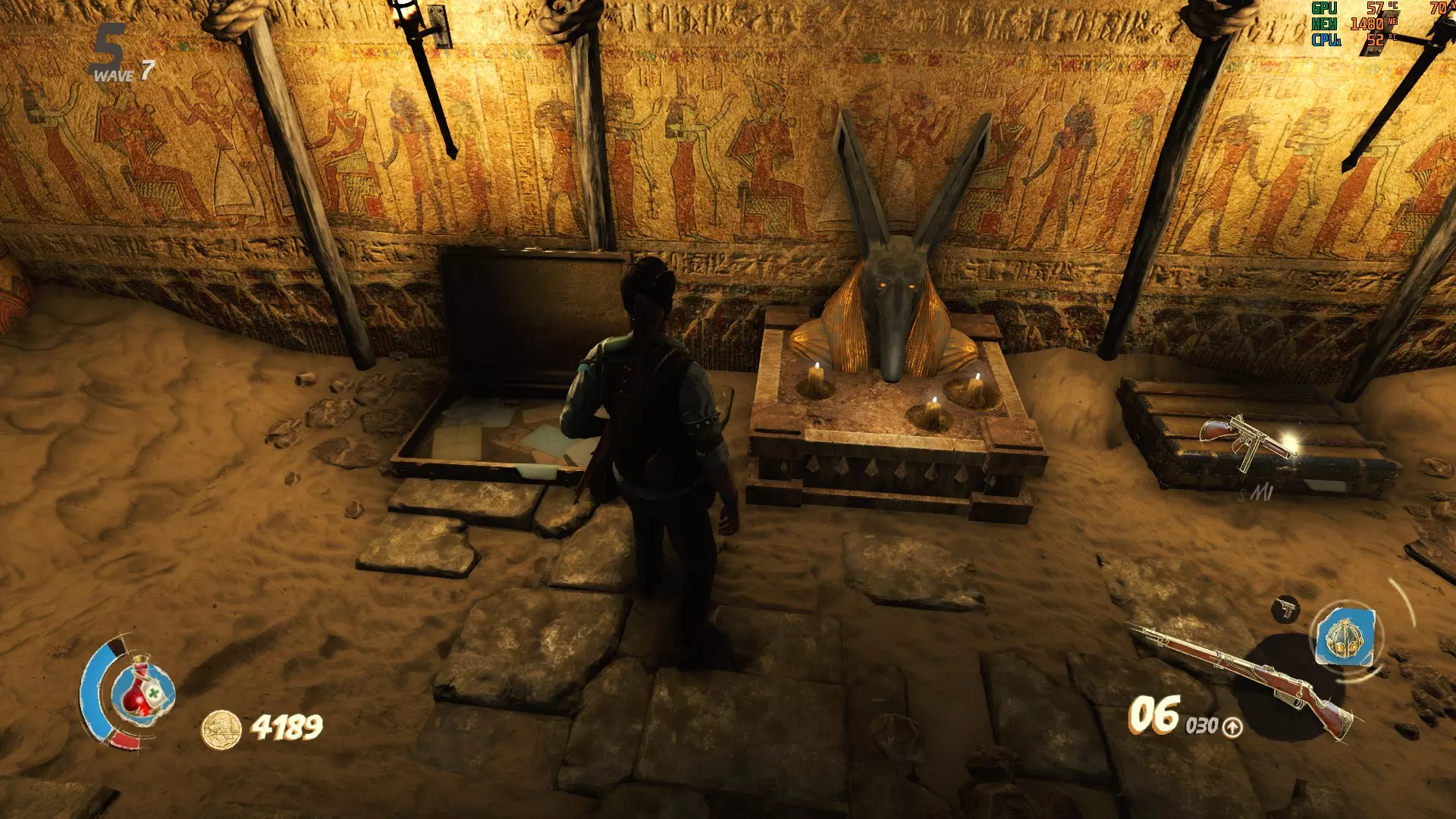 德昆西的综合指南详细介绍了如何解决在【尸潮模式】中各关卡出现的奇特难题。 【尸潮模式】说明 尸潮模式是一项额外内容,用于测试玩家能在一波又一波的不死怪物攻击下存活多久。与战役模式不同,尸潮模式无法更改难度,它会在玩家达到更高回合时自行提升。每回合有15波敌人,最后一波会出现一个 boss 敌人,遗憾的是,后续回合的 boss 敌人将保持不变。回合会无限进行,直到玩家死亡或退出游戏。 每次加载地图时,玩家将从一些基础装备开始。在战役模式中解锁的所有枪支和手榴弹都不会带入尸潮模式,但护身符的能力可以继承。击杀敌人可获得金币,用于在波次间隙的【工作台】购买武器。若游戏结束,所有装备将丢失;若重新加载地图,玩家需从基础装备开始,并重新寻找宝石和蓝图。玩家可以从检查点继续游戏,但仍需从基础装备开始。不过,从检查点开始地图时,会获得一定的【初始津贴】,用于购买更合适的武器。 激活【工作台】可获得满弹药,且它会每隔几波变换一次位置。由于位置顺序固定,了解下一个工作台的开启位置至关重要。找到蓝图可解锁新的武器和 grenades(手榴弹)供购买,而寻找宝石对于升级枪支也很重要。每次加载地图时,宝石的位置都会发生变化,但蓝图的位置不会。在一次游戏过程中,你可能会获得重复的宝石,也可能错过想要的宝石,而在下一次游戏中则可能运气好,找到所有需要的宝石。 此模式下,每个关卡中都有一个谜题可以解决。虽然解谜并非必须,但如果你想获得一把独特且强大的武器,就需要在所选关卡中解开谜题。该武器初始价格为2500金币,当武器耗尽或携带者死亡后,它会在发现它的位置重新生成。 不过,每次拾取该武器时,其价格都会翻倍。也就是说,价格会从2500金币涨到5000金币,然后是10000金币,以此类推。虽然部分谜题在战役模式中可能似曾相识,但每个包含谜题的关卡都会在下方章节中列出。 挖掘场 这个偏远的挖掘现场有一个谜题,你需要打开至少3扇黄金门才能得知答案(有3扇门的信息就足以推断出最后一个雕像的位置)。如果你已经知道答案,就需要打开最昂贵的那扇门,花费10000金币。带有拉杆的雕像会出现在新解锁的房间里。要获得答案,你需要仔细观察每座半身像以及其他黄金门后蜡烛的数量。从有1根蜡烛的半身像开始,依次观察到有4根蜡烛的半身像。这个顺序必须应用到谜题房间内的雕像上。