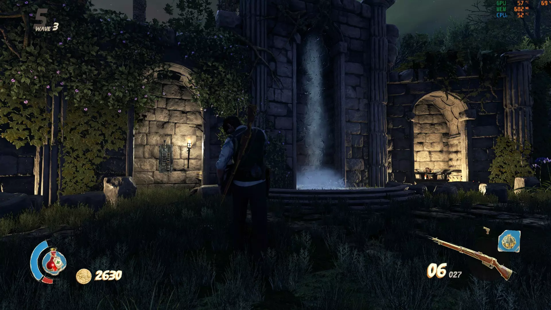 然后它会离开房间,顺时针穿过花园的起始区域,经过你花费7500打开的那扇门,然后回到你打开10000门的开放区域。你可以在瀑布附近等待,让灵体完成它的路线。如果瀑布仍在流动,灵体将无法激活瀑布后面的狮子雕像,它会消散,你就必须重新解谜。为了防止这种情况,你必须拉动拉杆使瀑布停止,这样灵体就能不受干扰地到达目的地。拉杆不会保持在原位,几秒钟后会再次开启瀑布,所以当灵体开始向瀑布移动时再拉动它。