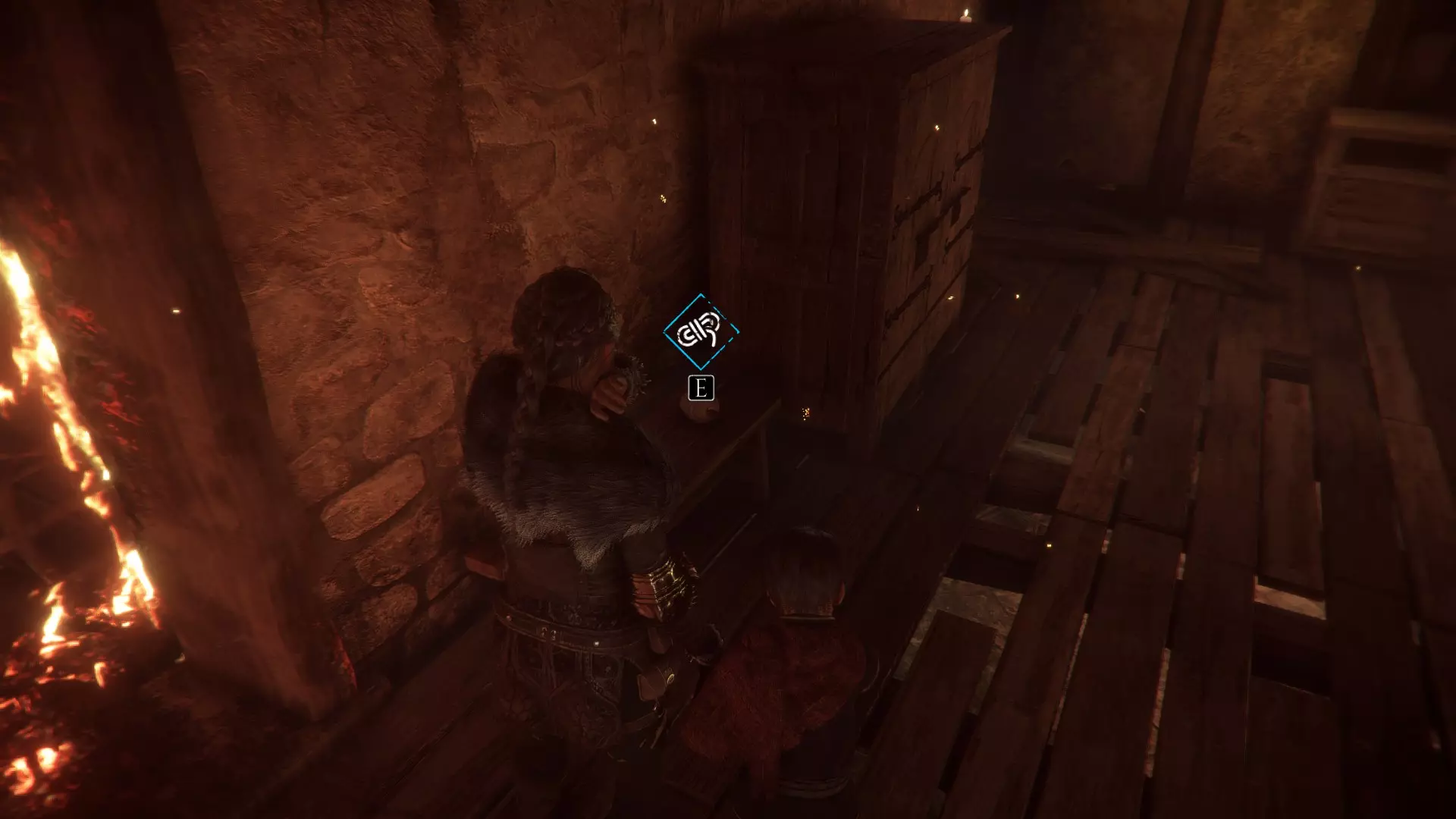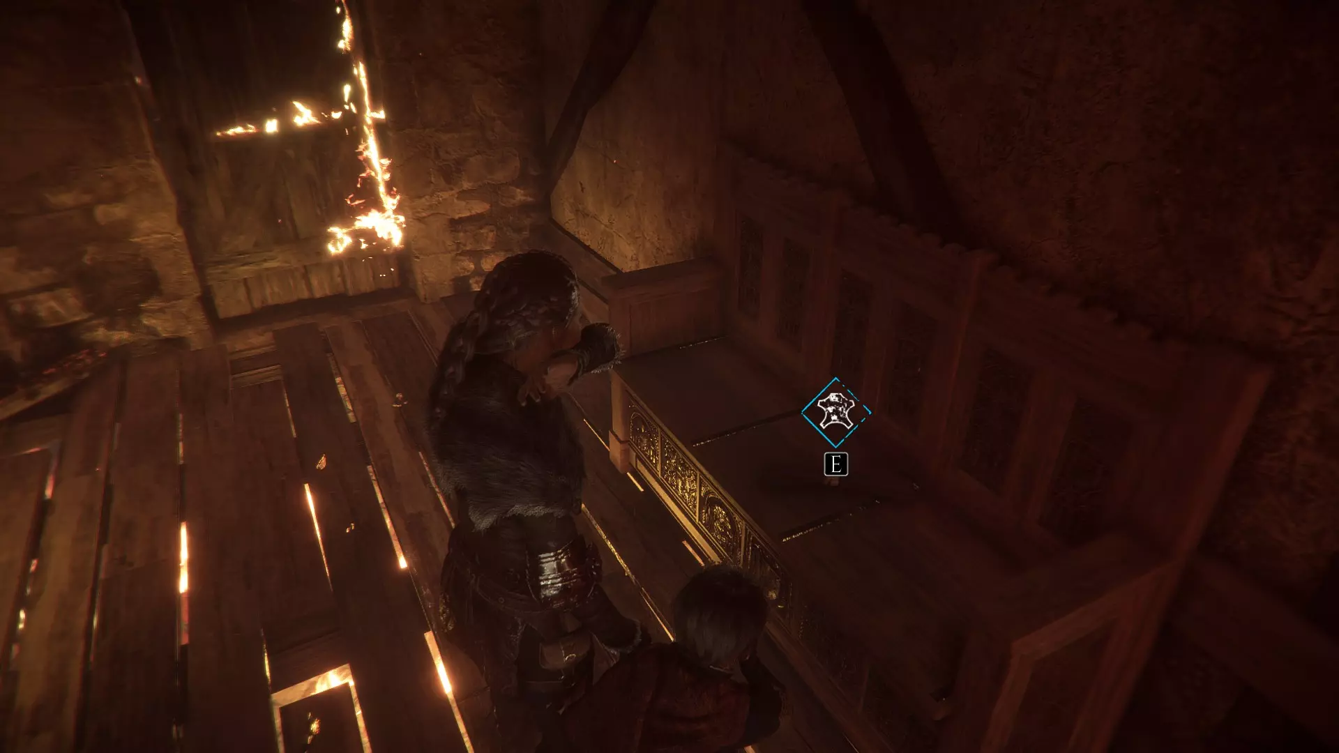 和梅莉一起爬上梯子后向左走。穿过你推动的第一个火盆。