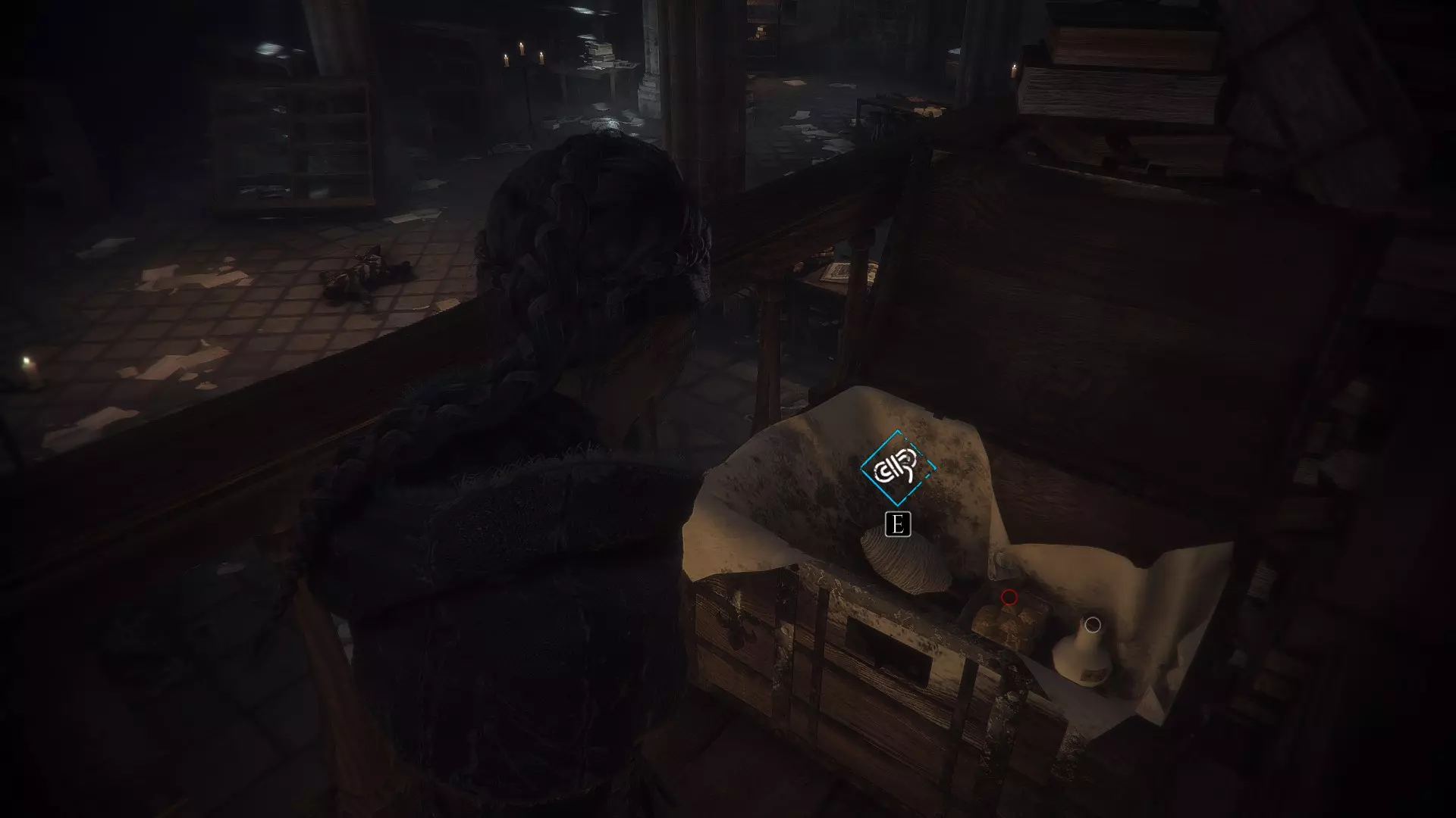 这个破损的箱子位于死马前方。大塔内有1个工具。楼上有1块布料。