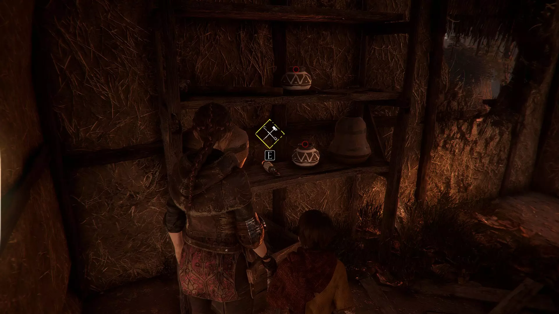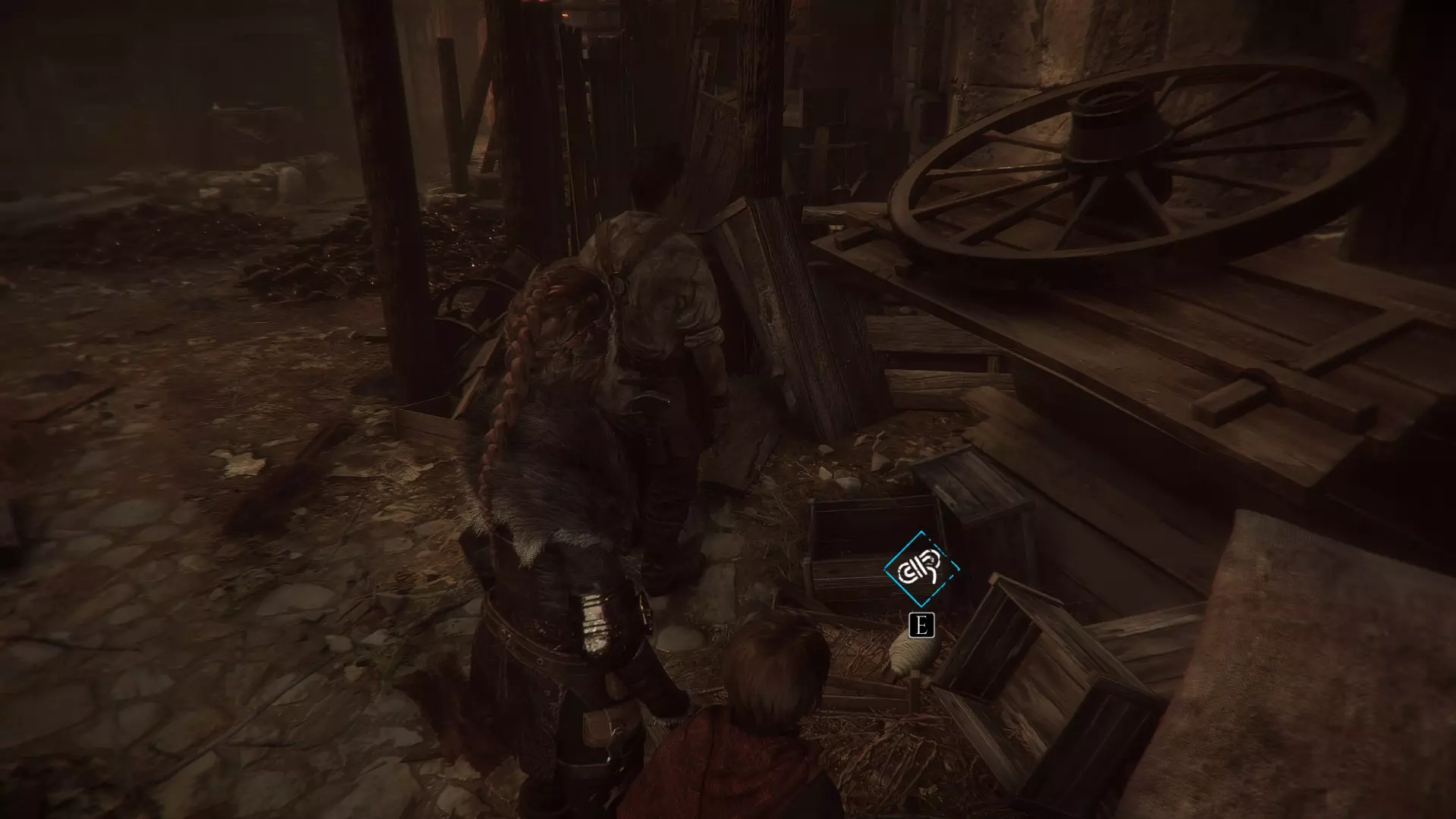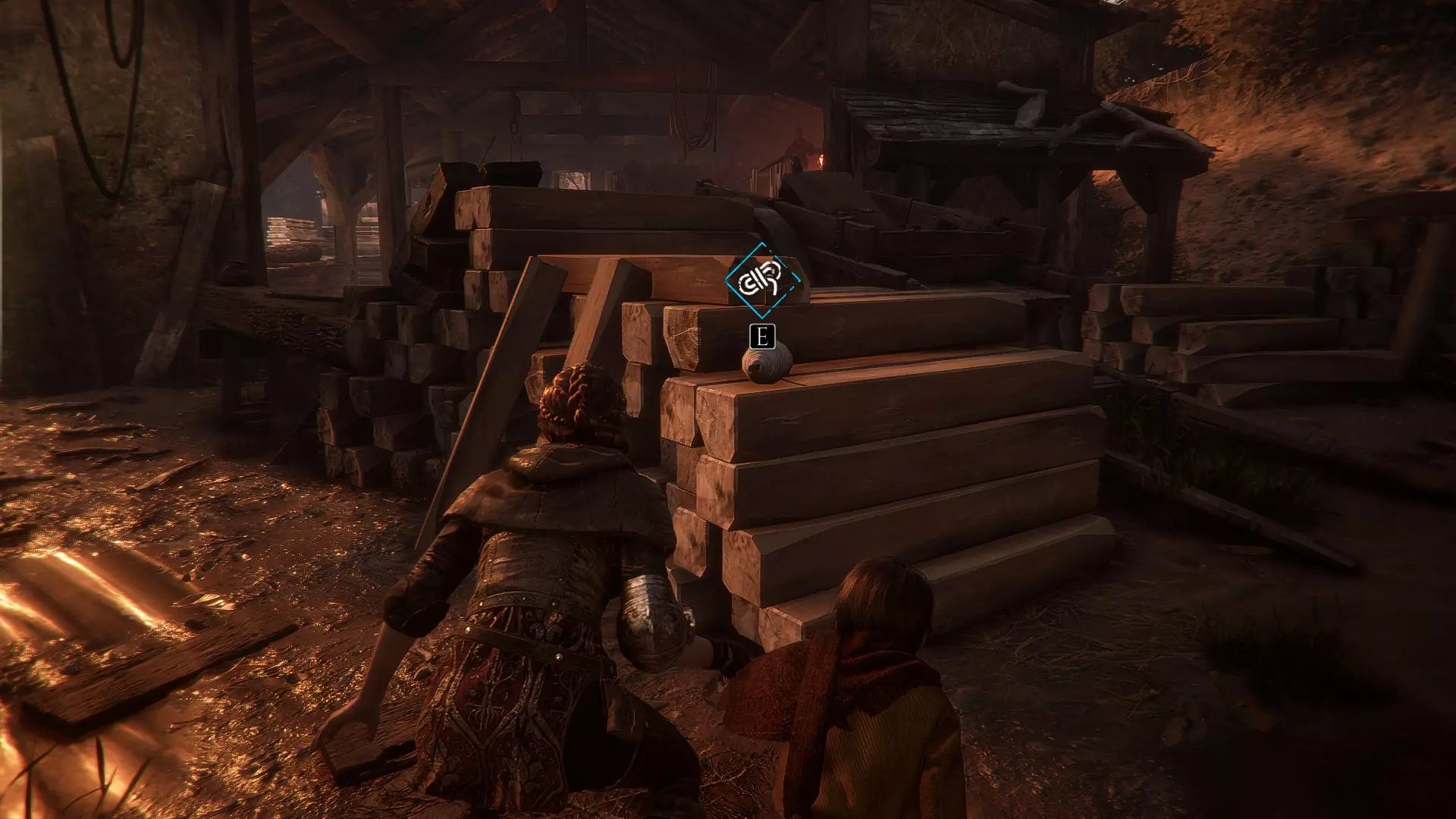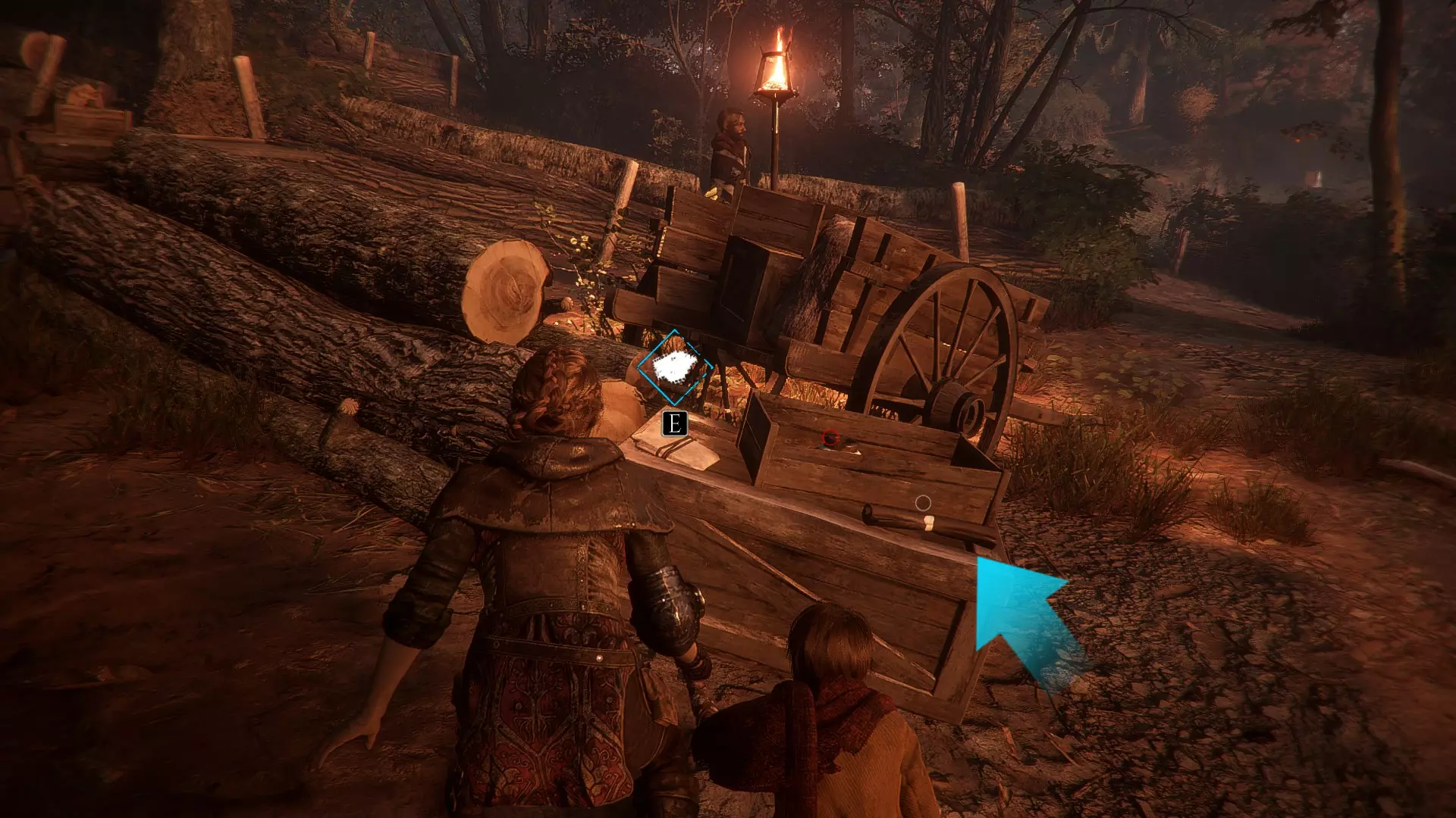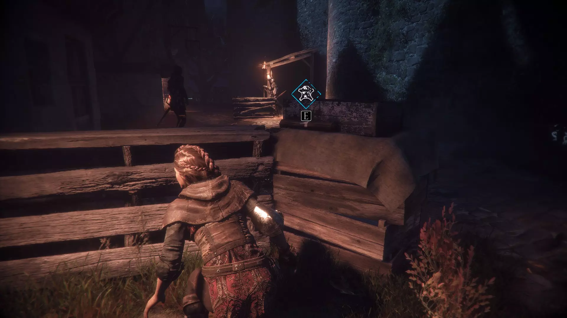 当你离开雨果藏身的田地后,正前方就是鸡舍,但不要走向鸡舍,左边还有另一片有守卫的田地。那里会有一个码头,码头上有一个箱子,沿着这条路继续走,你会看到一间小房子,门口站着一个守卫。你可以引开他然后从门进去,或者绕到房子后面。那里有一个洞,雨果可以爬进去,为阿米西亚打开窗户。