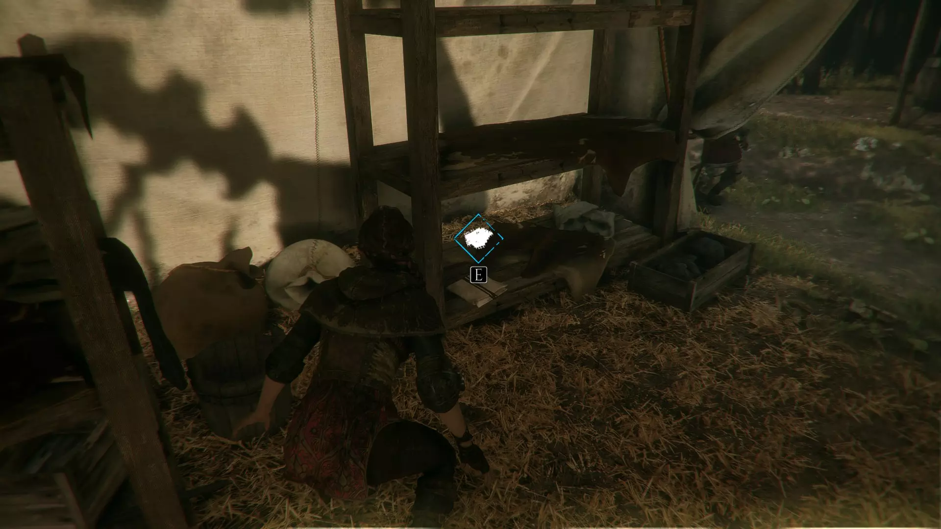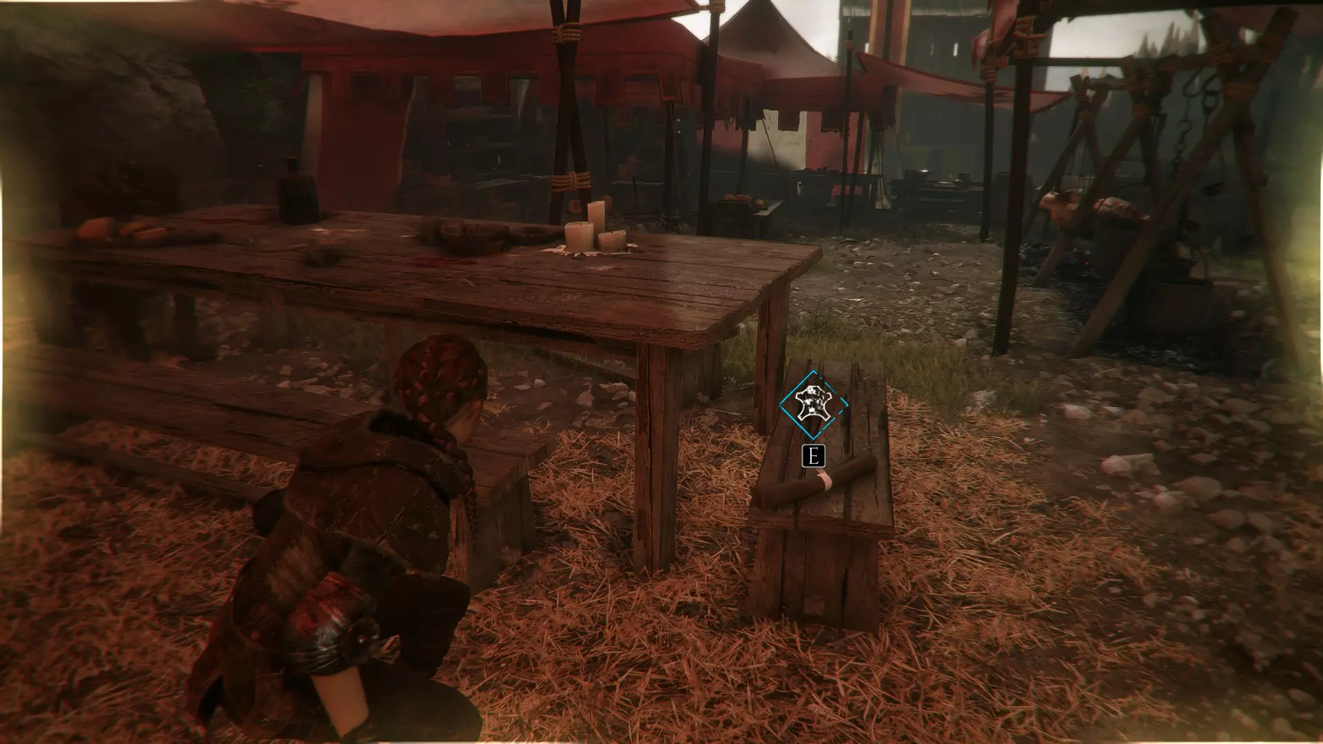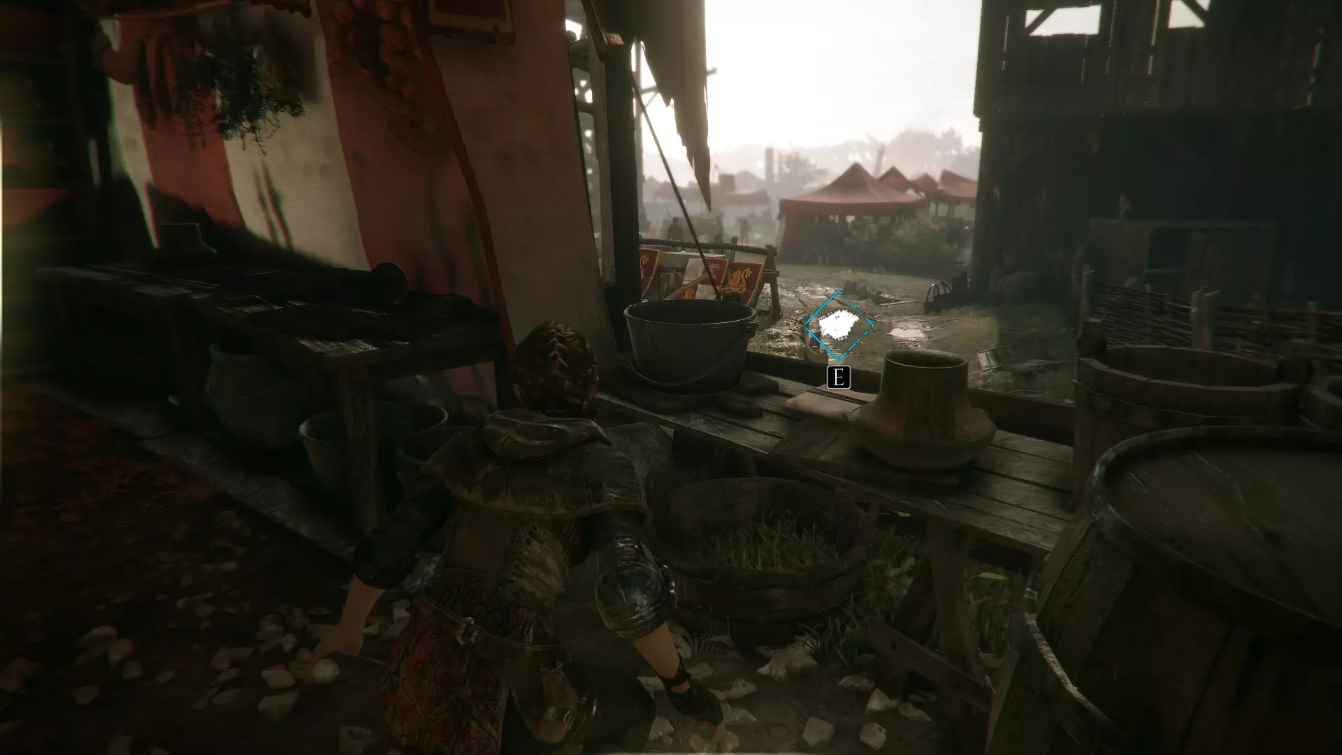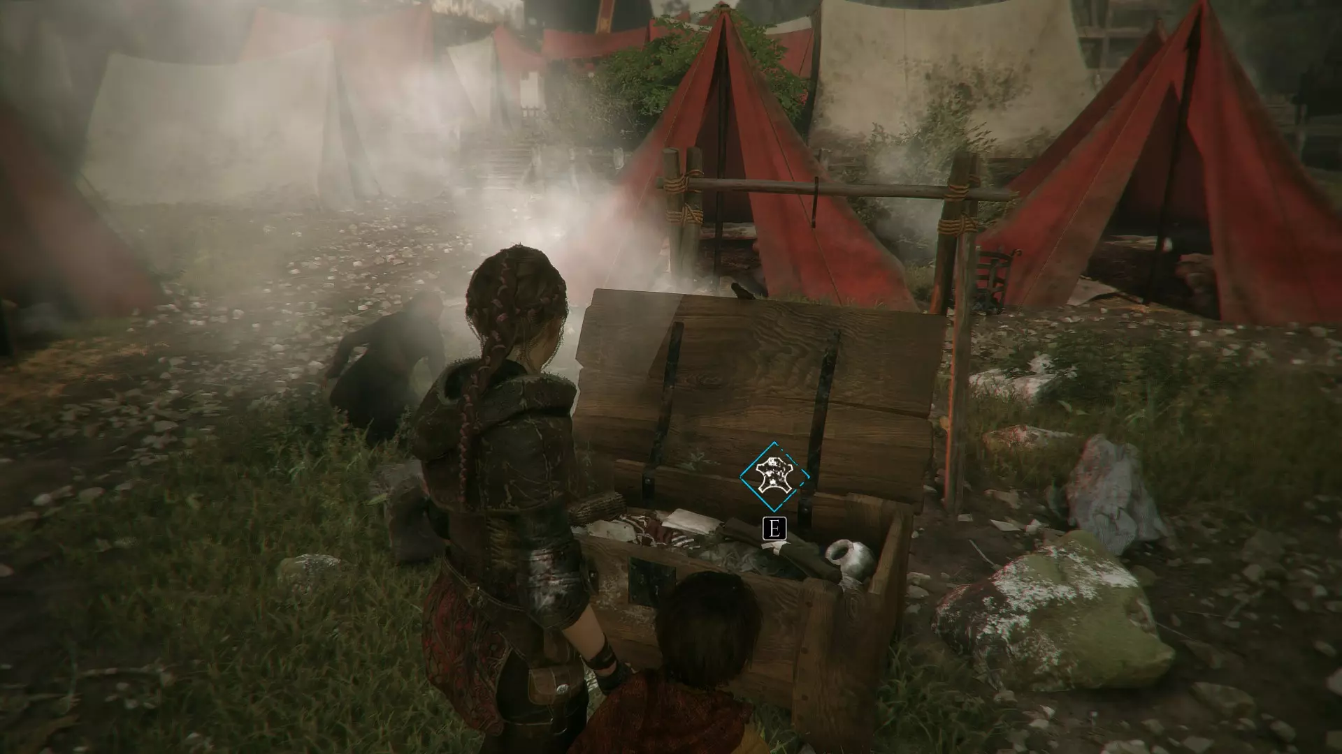 帐篷左侧有工作台的地方。进入阿米西亚的房子前。