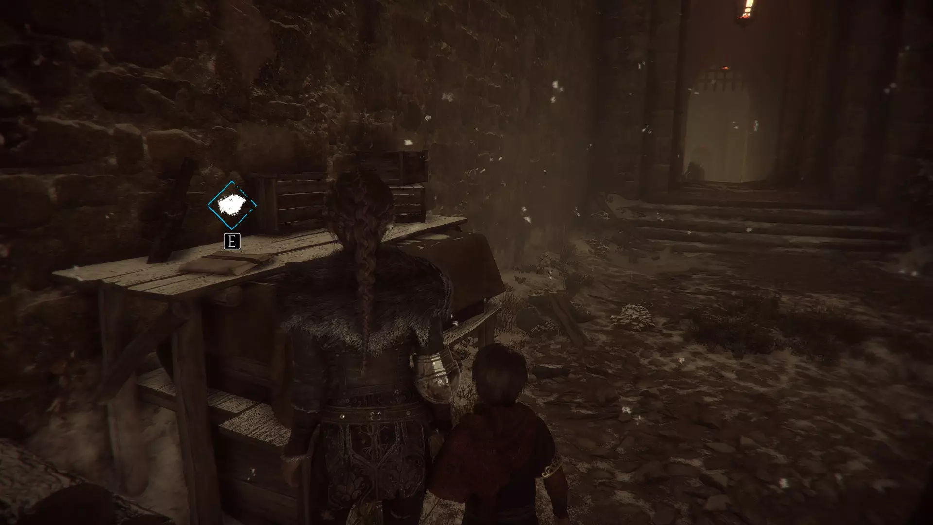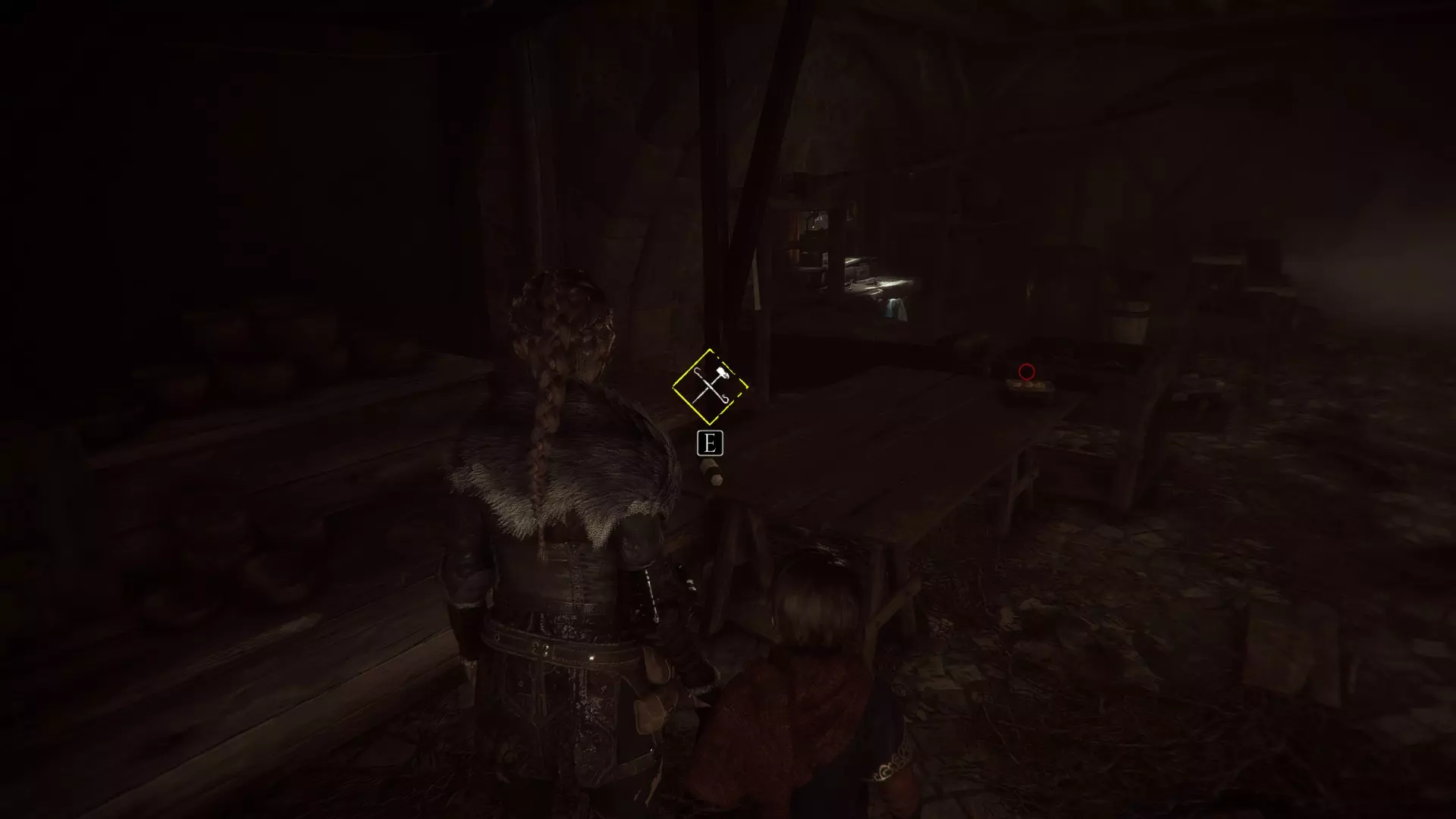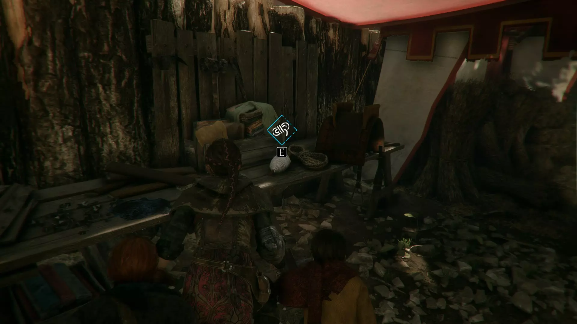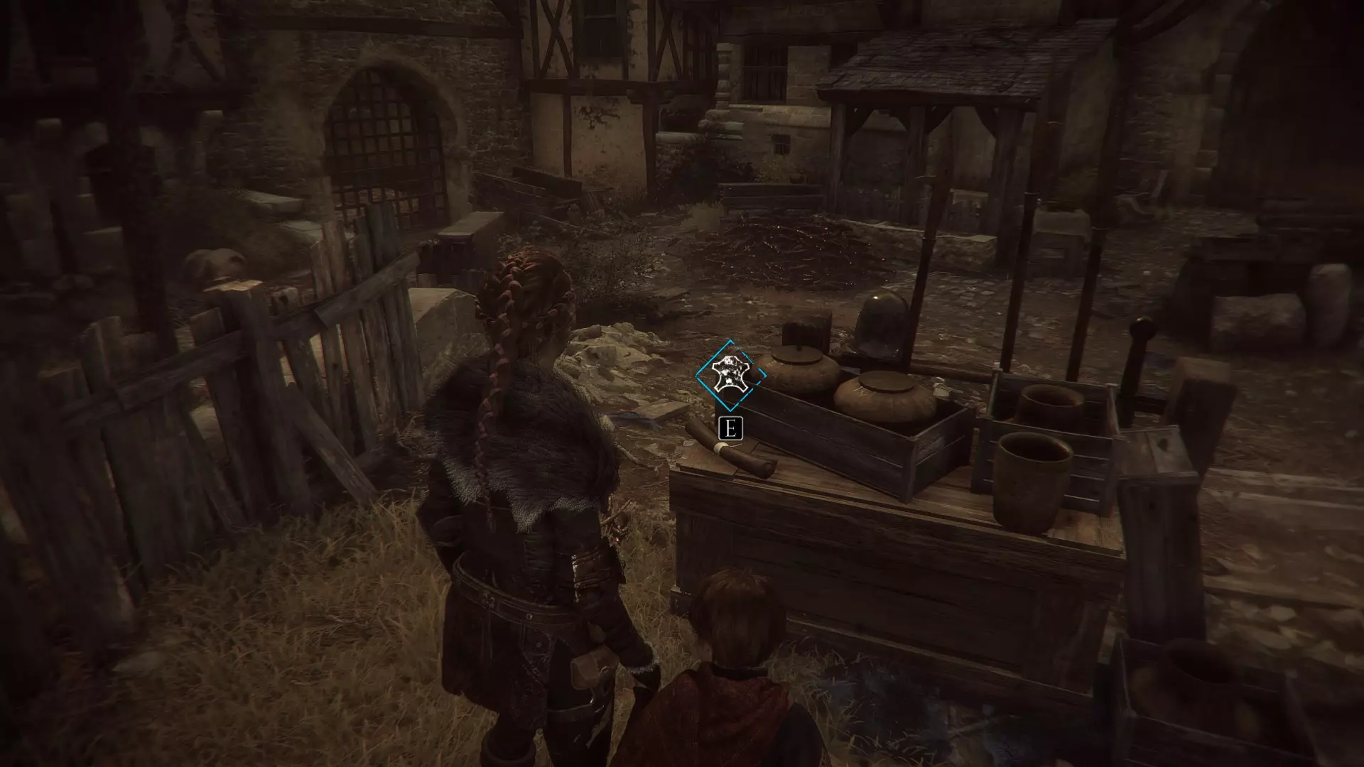 帐篷左侧有工作台的地方。进入阿米西亚的房子前。