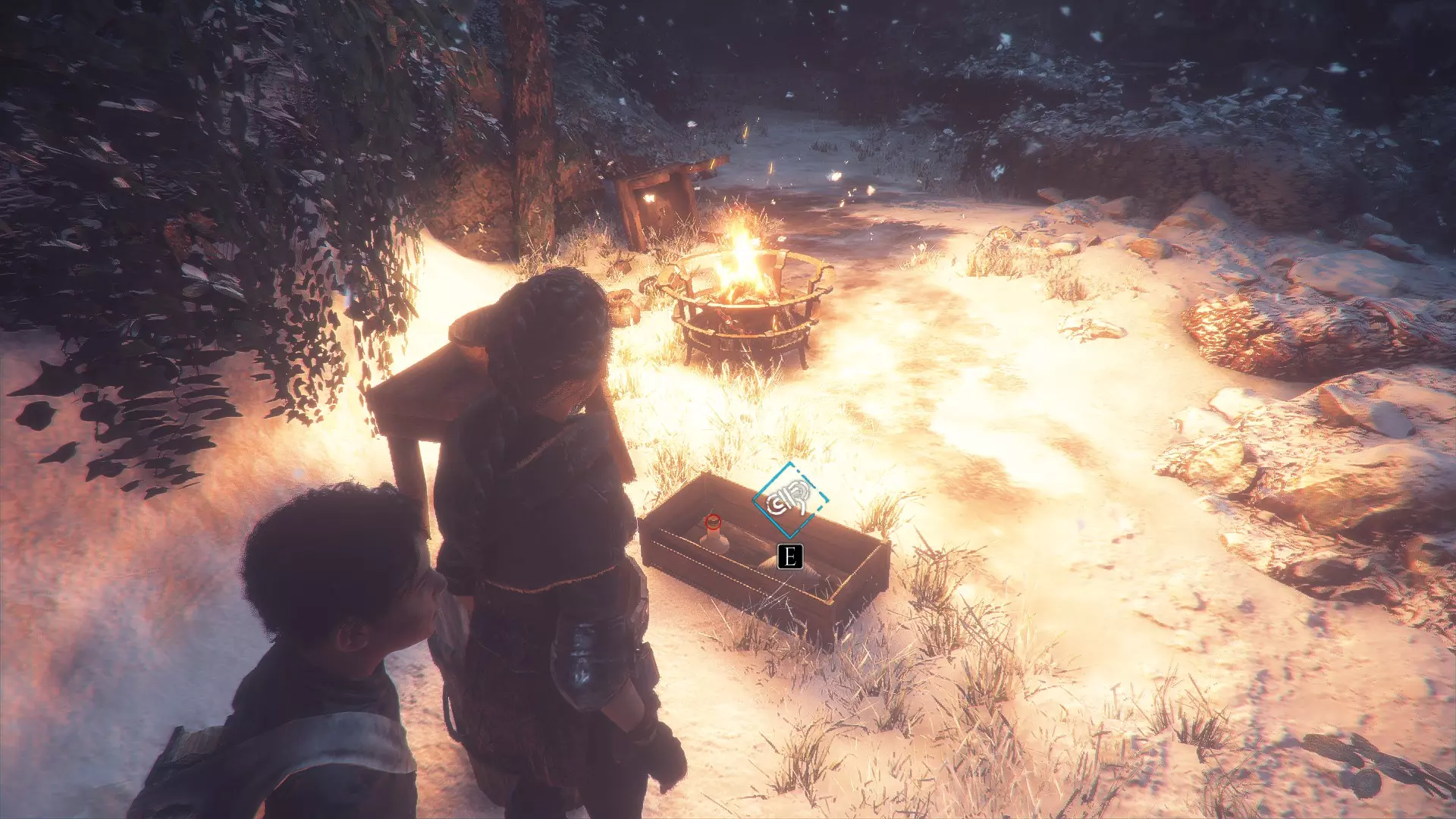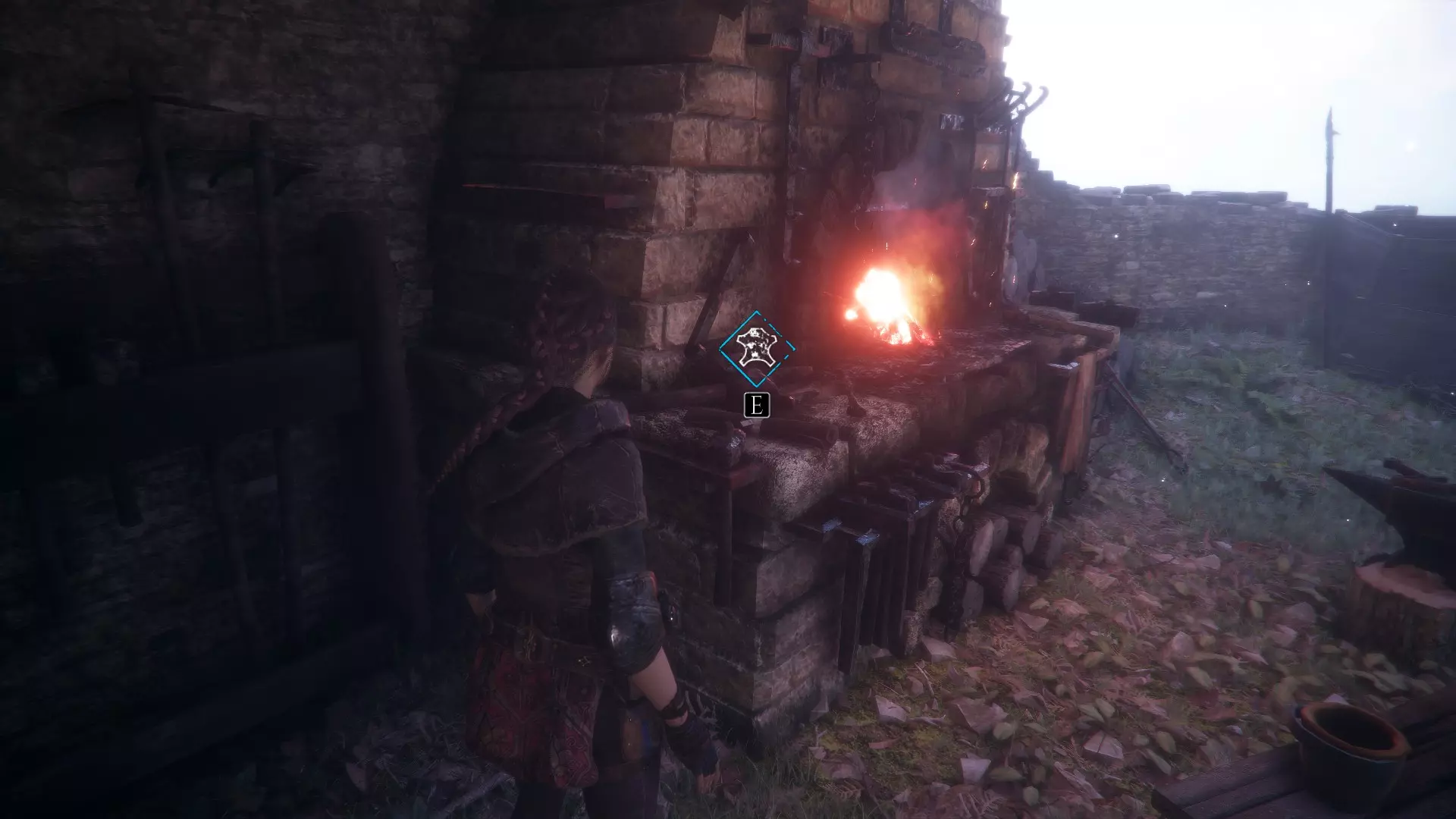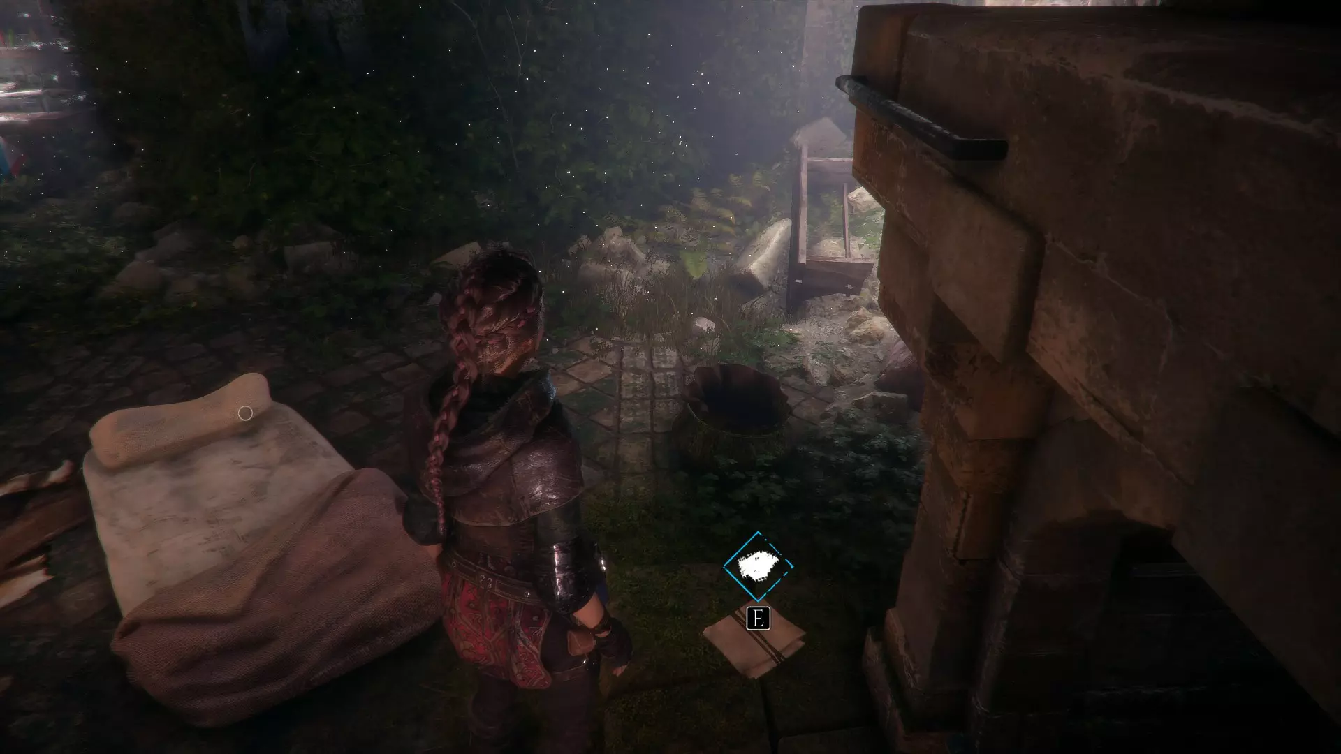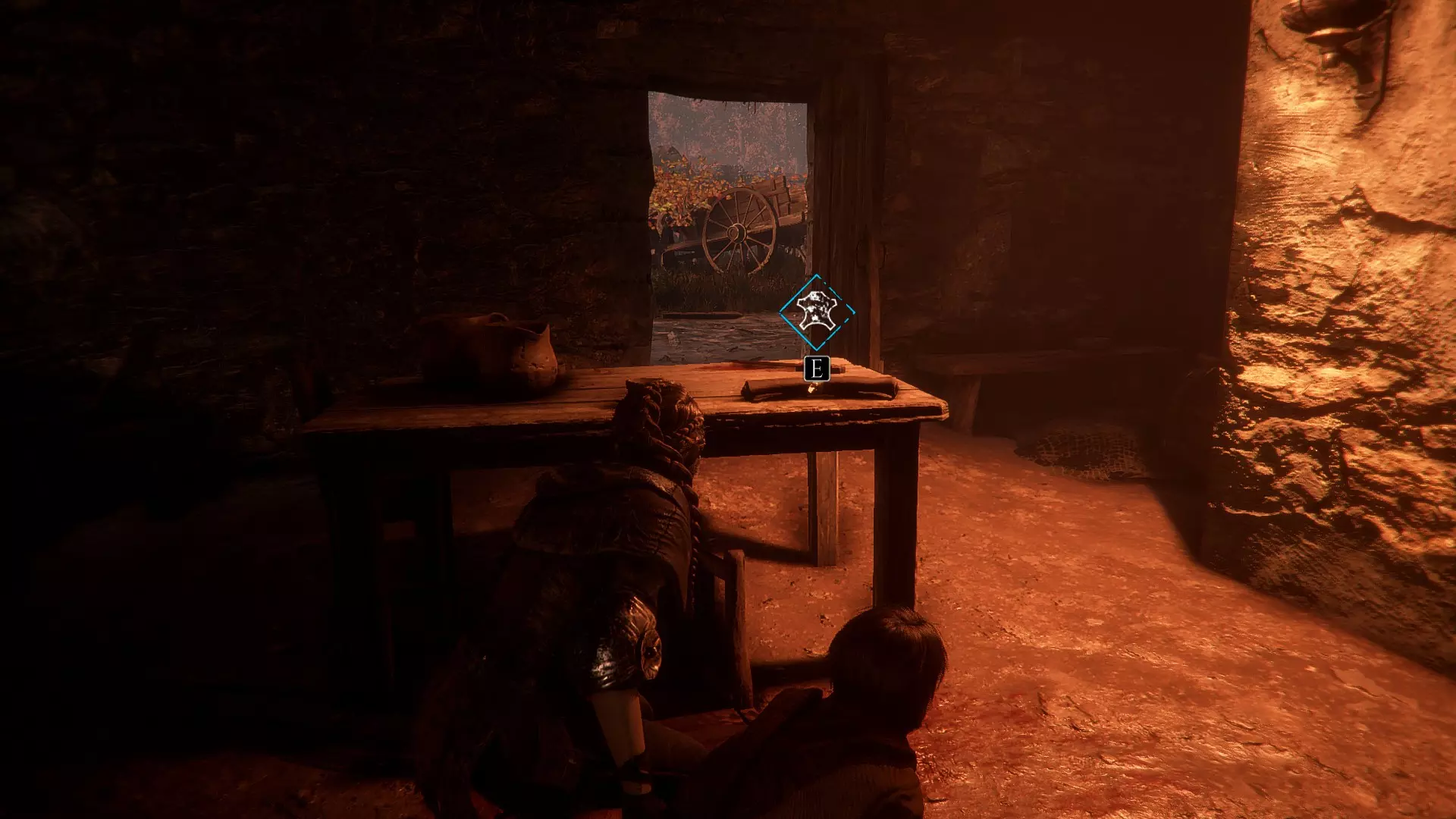 帐篷左侧有工作台的地方。进入阿米西亚的房子前。