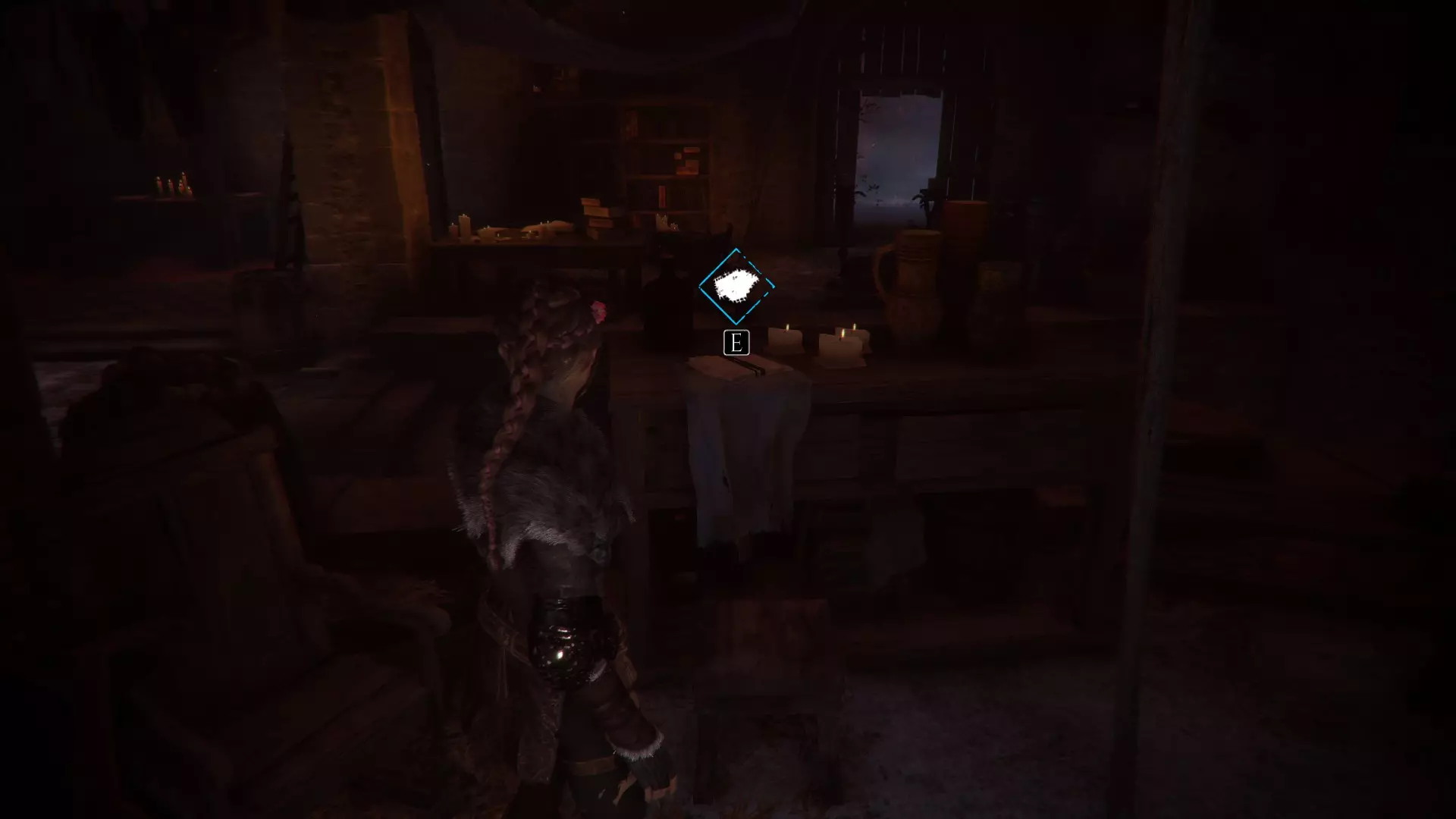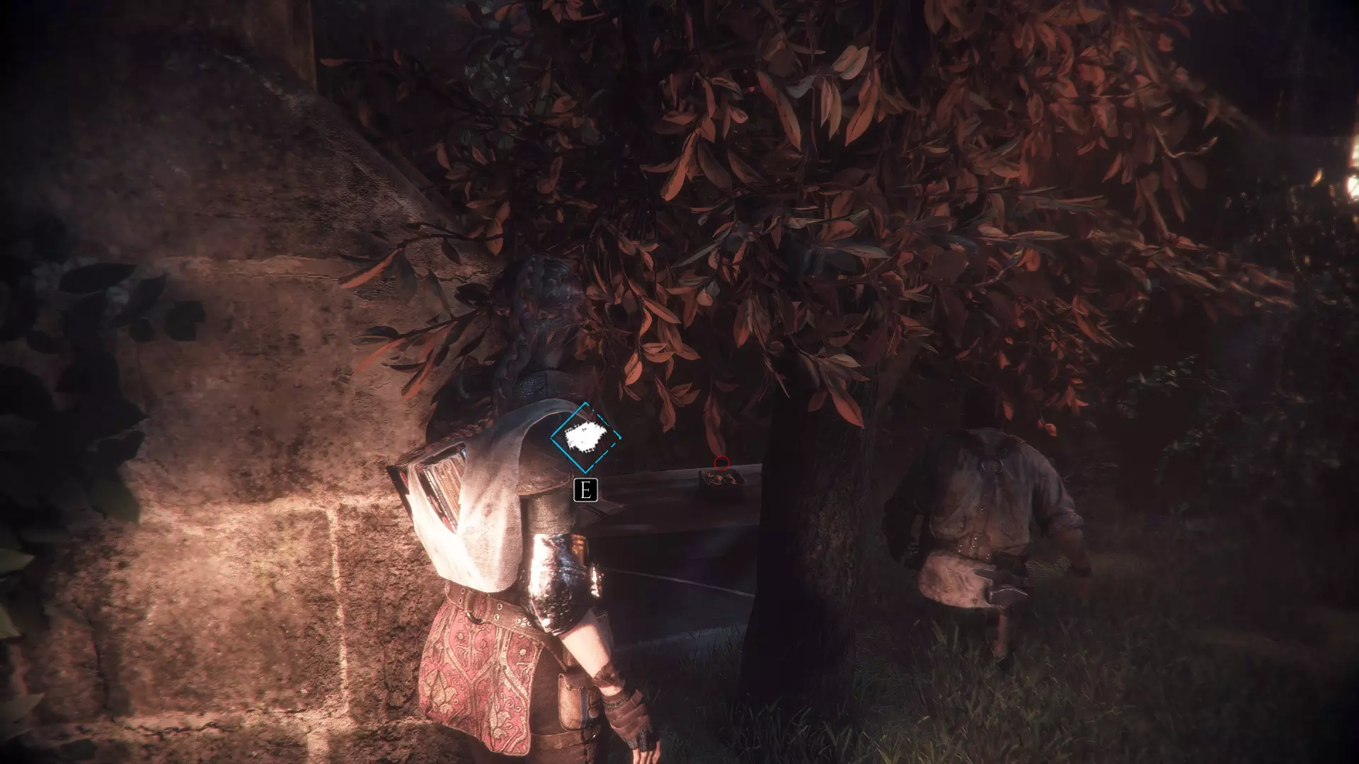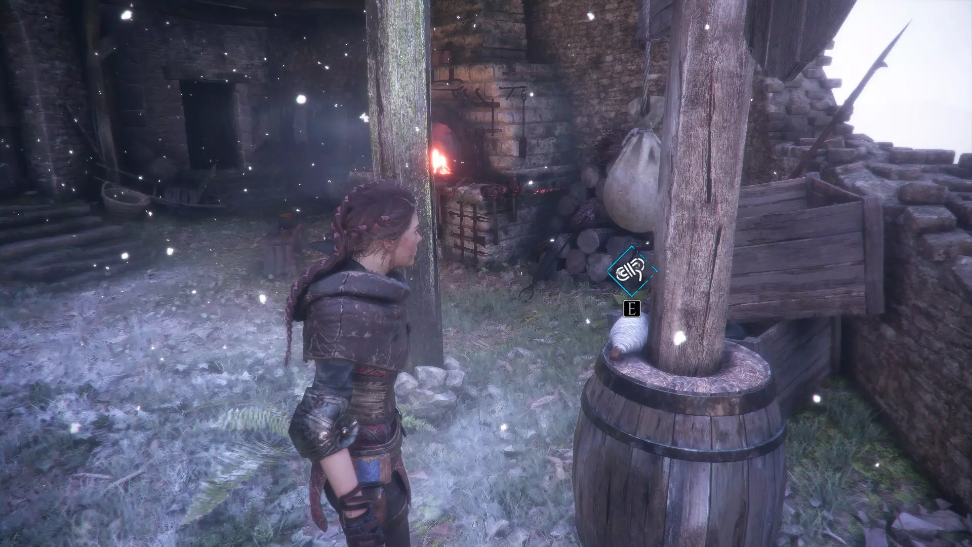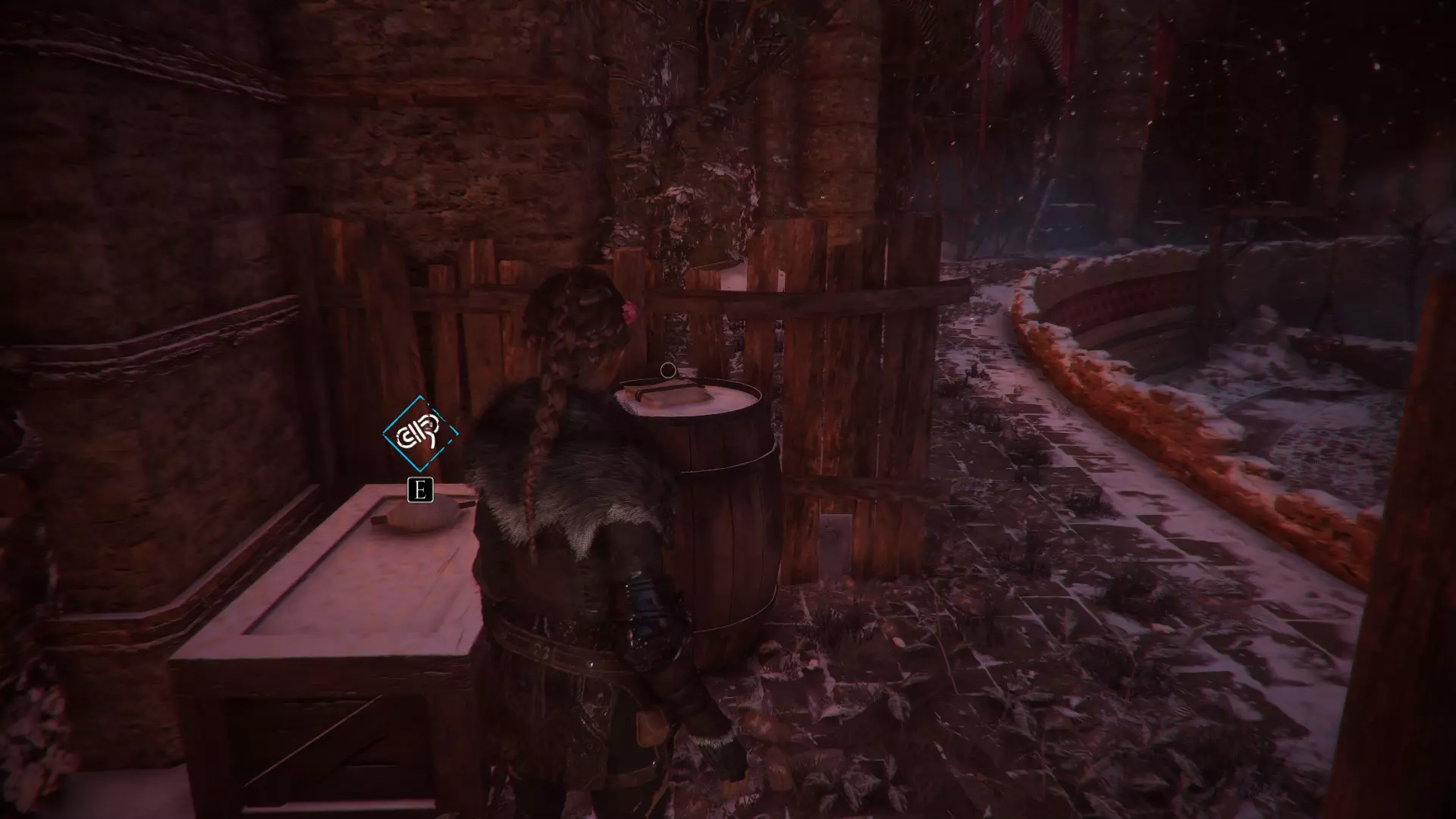 帐篷左侧有工作台的地方。进入阿米西亚的房子前。