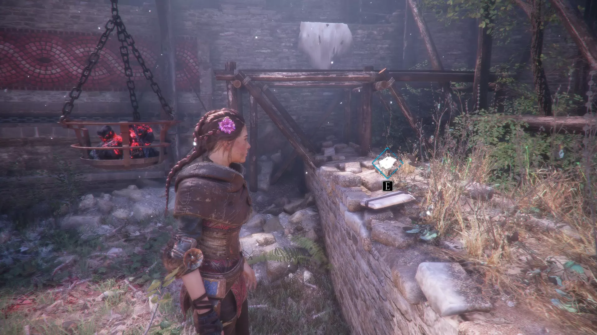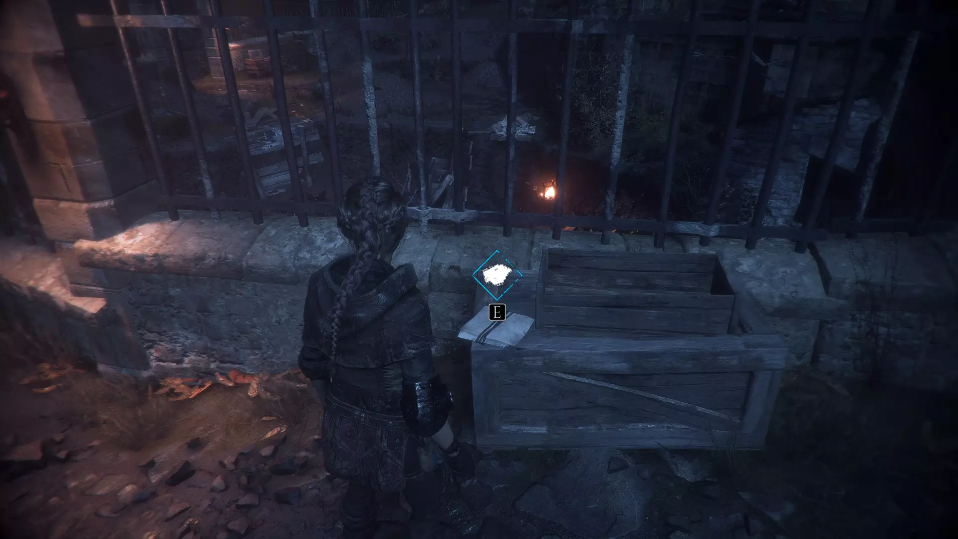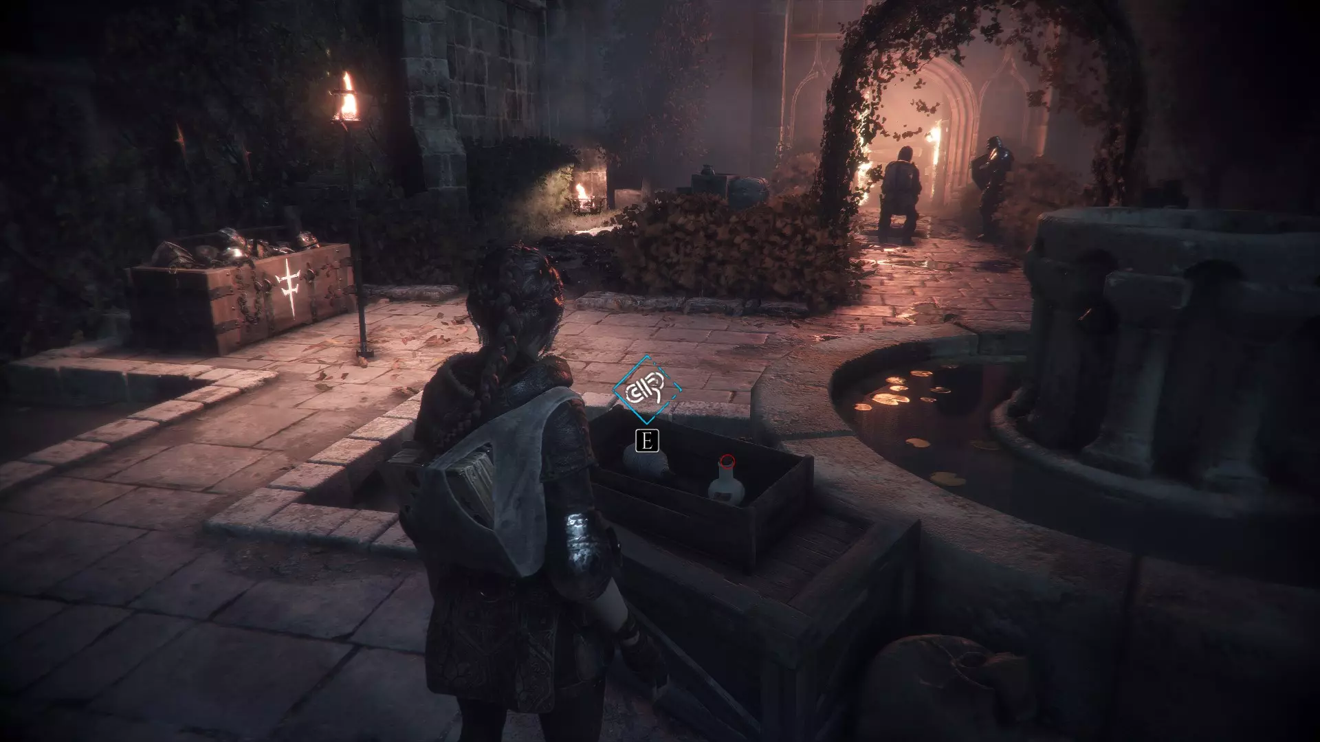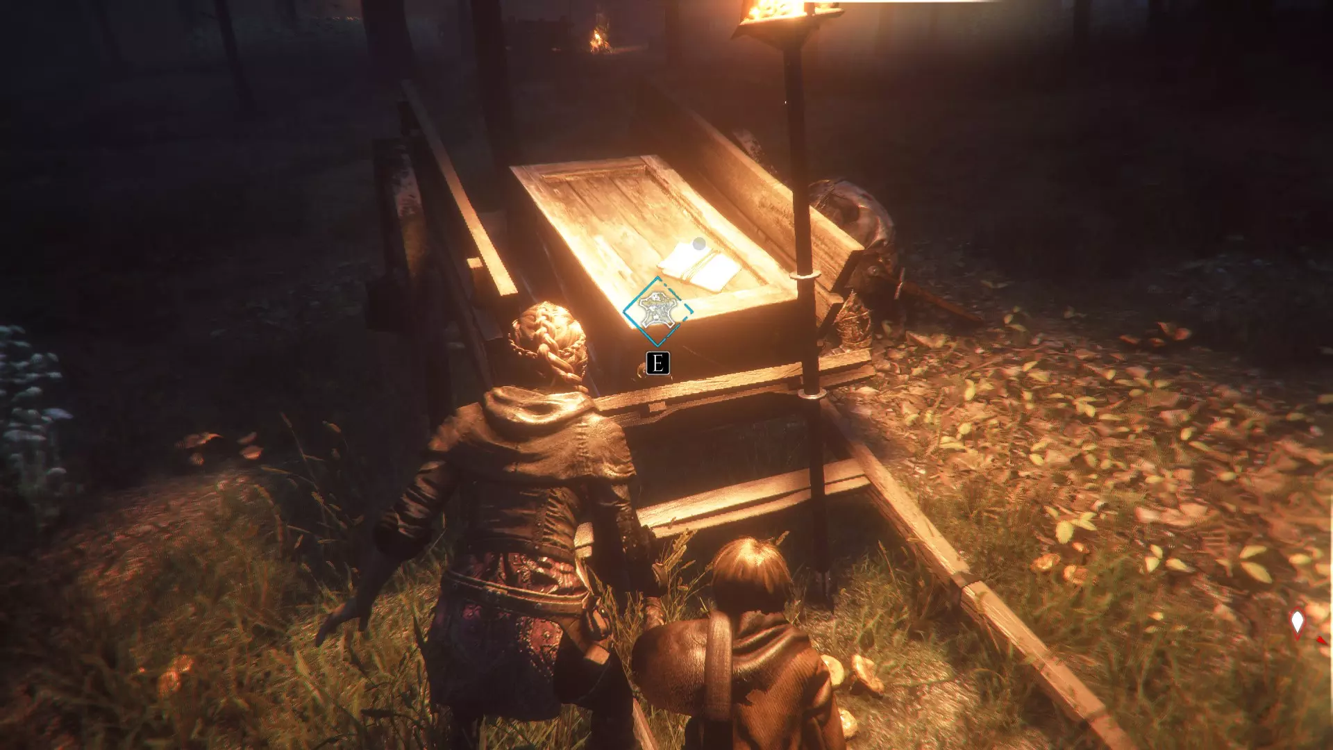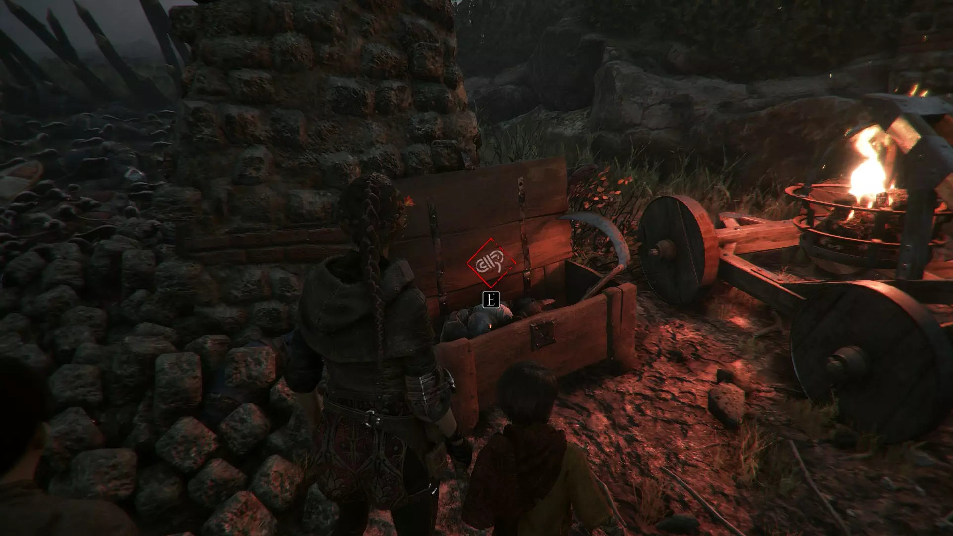 进入有陷阱守卫的推车前,先掉头找到一个宝箱。宝箱位于摇曳的燃烧余烬旁边。