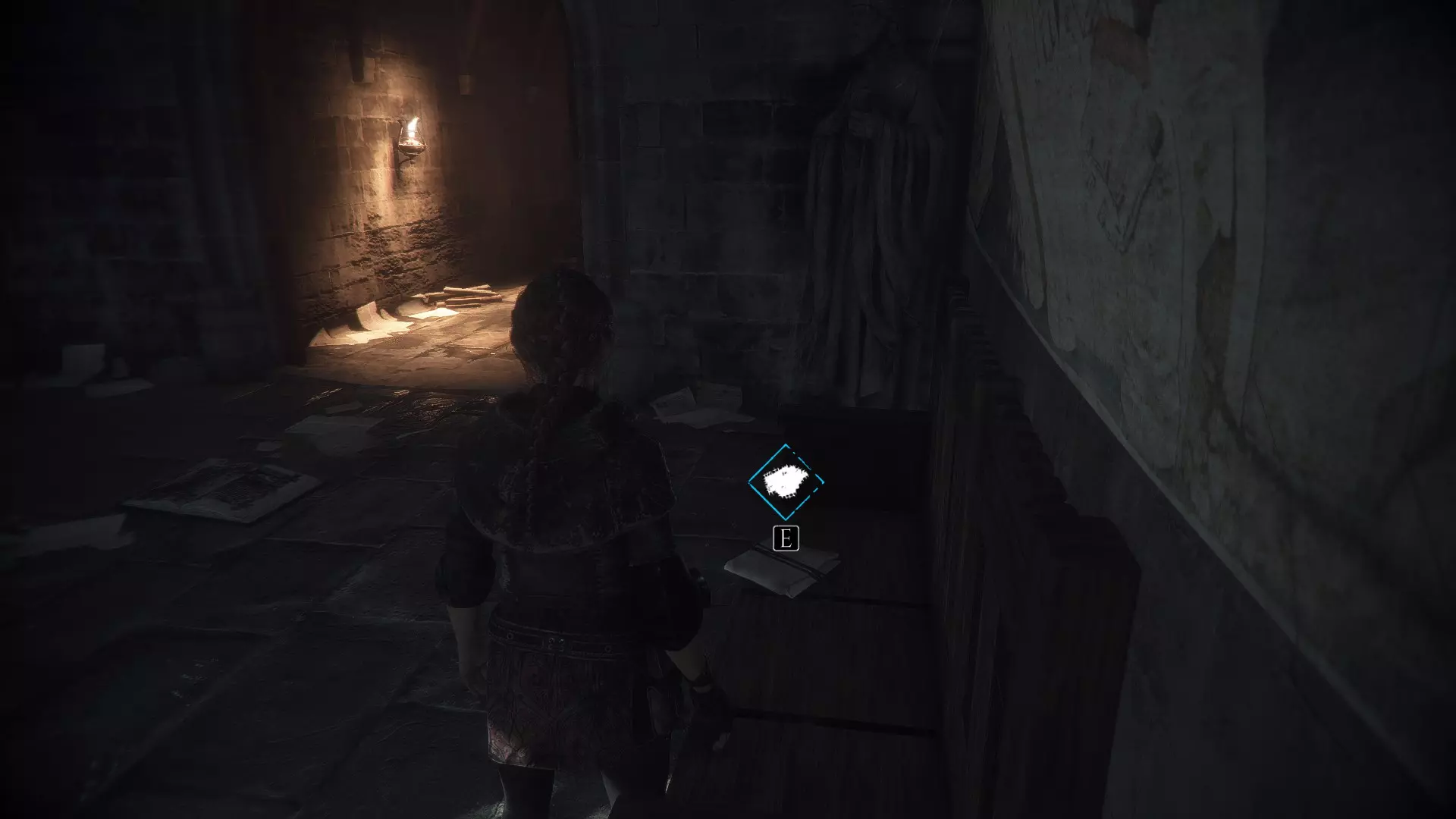 在通过守卫检查鼠坑之前,在工作台对面的走廊里。