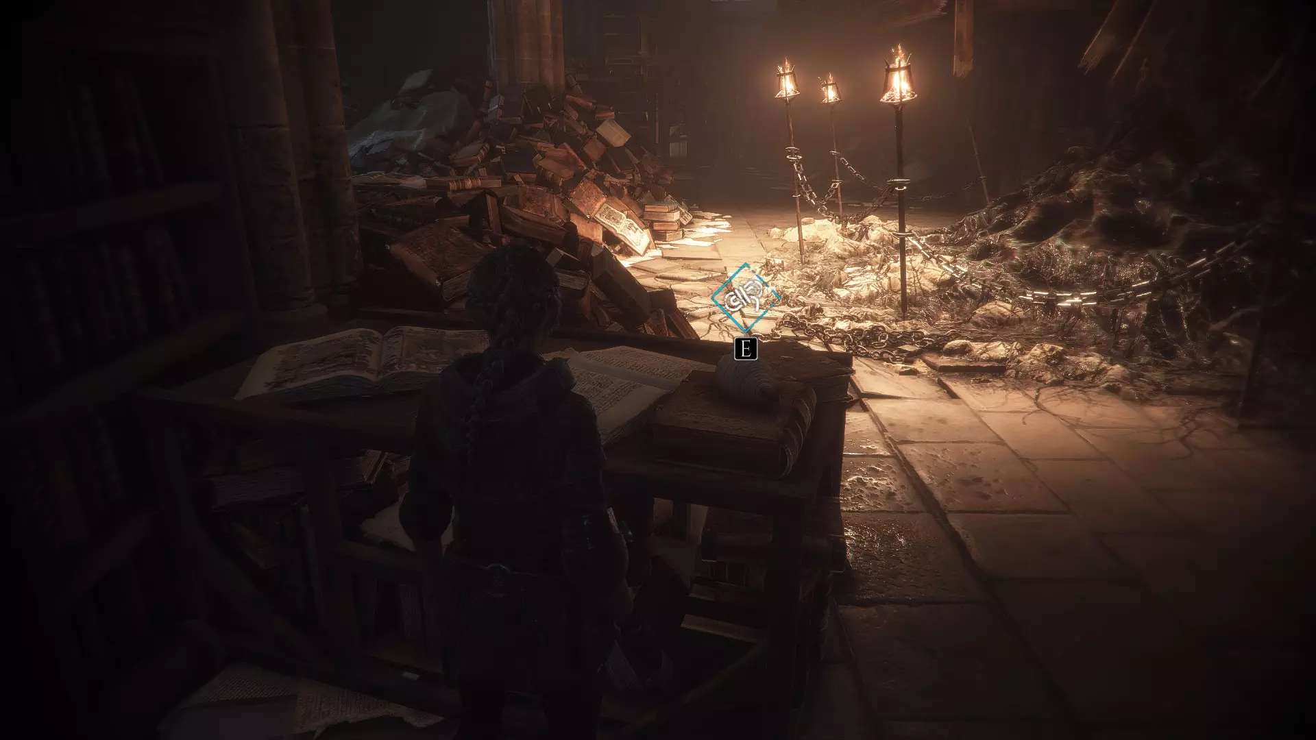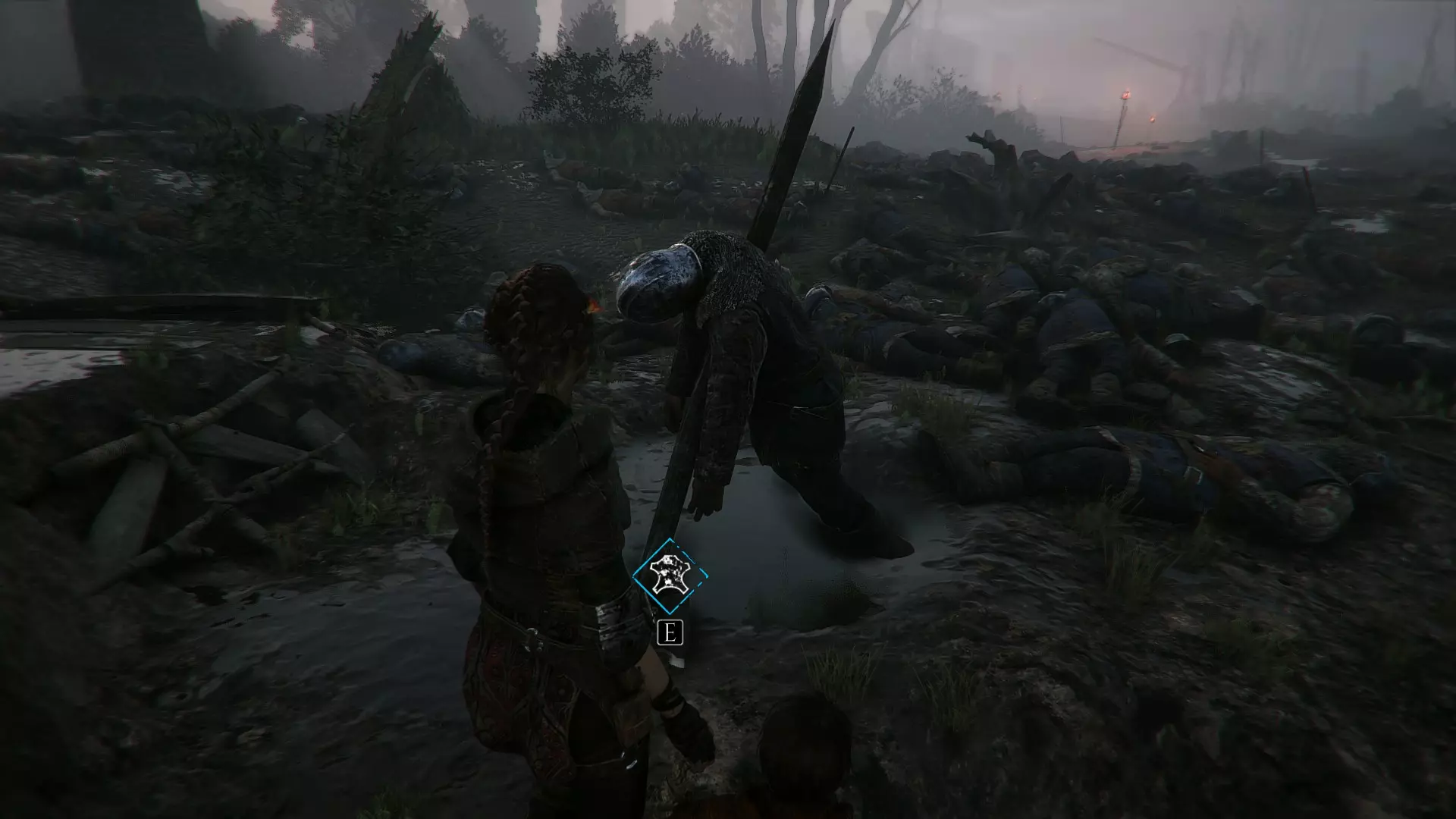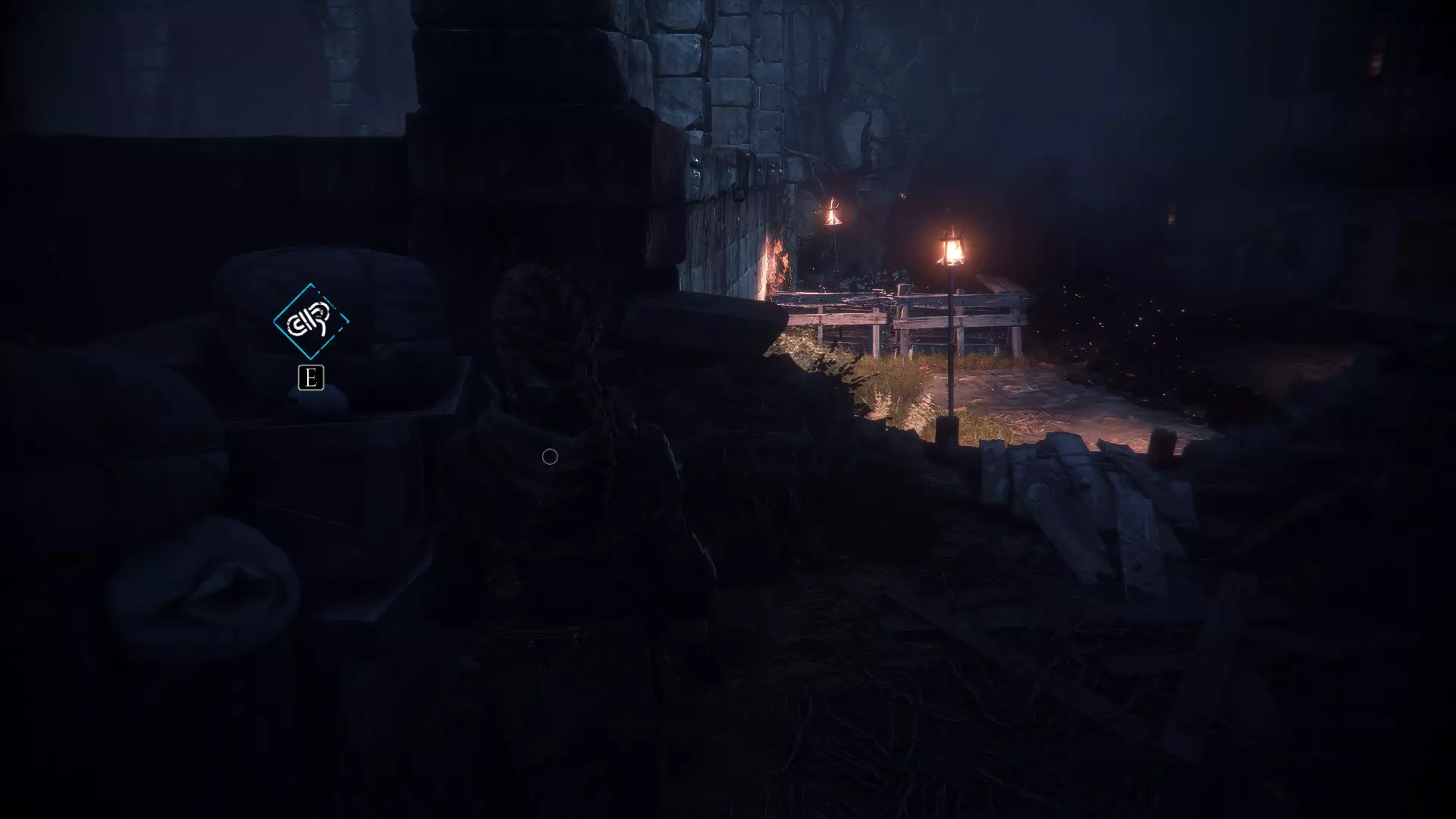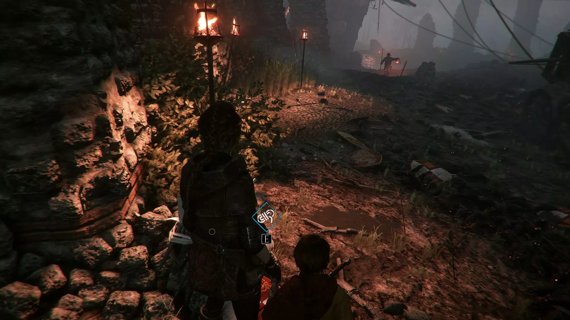 渡槽处火炬的右侧。经过堆积着士兵尸体的士兵之后。