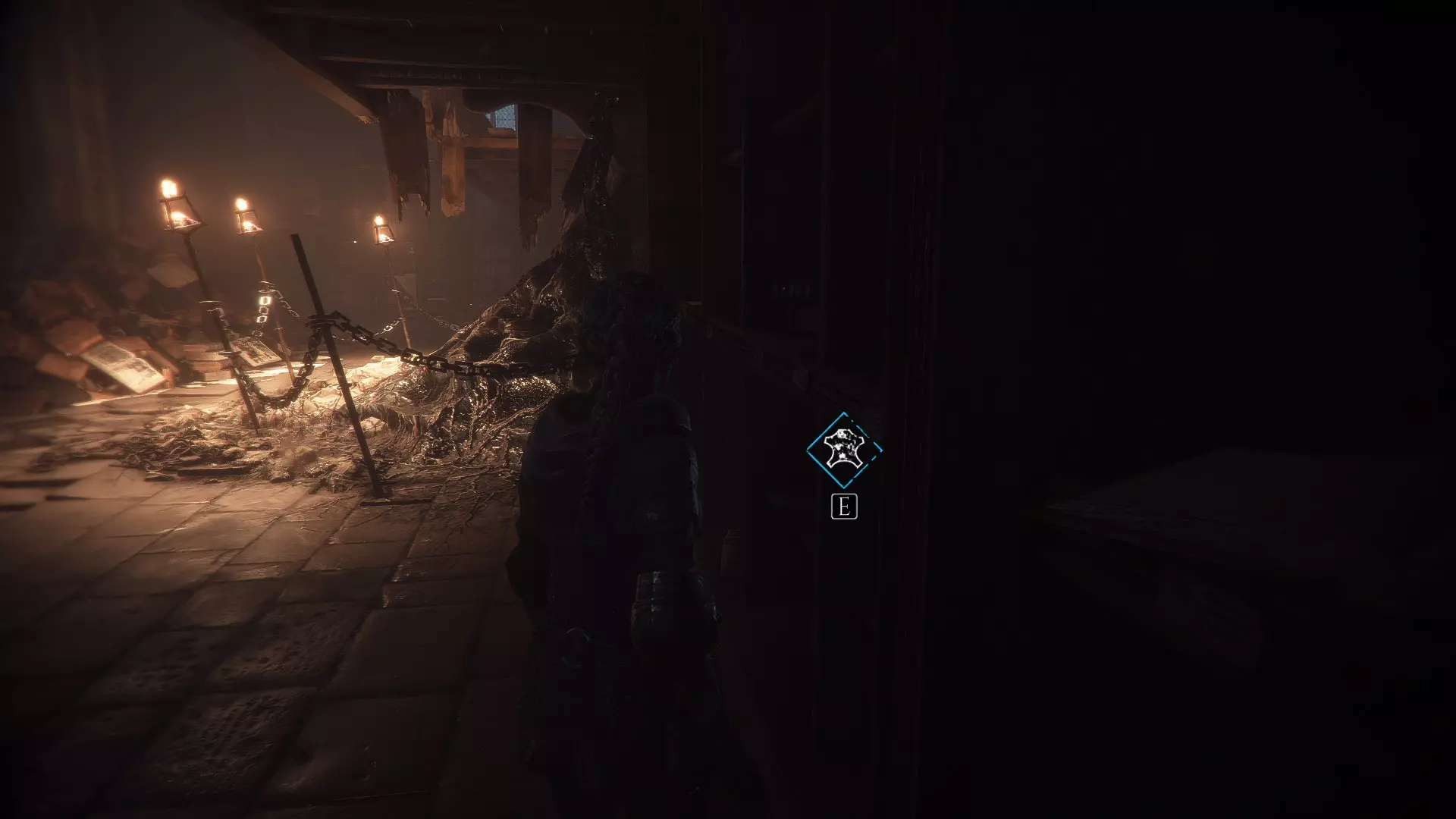 在打倒两名守卫前,向右转可以找到布料。这里也是【求知纪律】所在的位置(罗德里克站立处的右侧)。