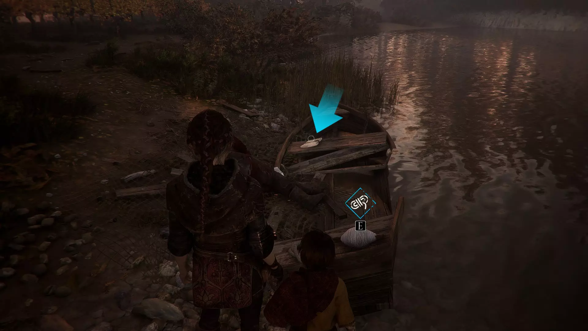 在雨果会跑去躲藏的那片田地,穿过田地后,在一间鸡舍里。右边会有一艘破船。