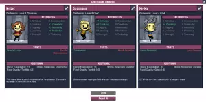 在工作台处获得布料和工具。经过两名僧侣时。