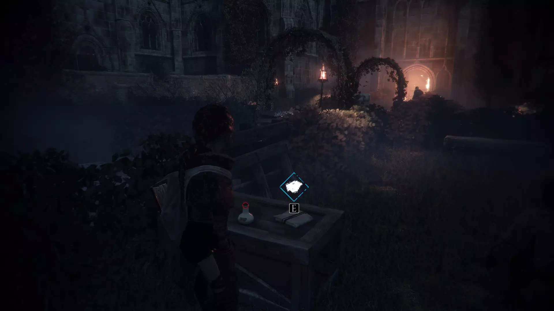帮助那两个被抓住的人之后,在到达大教堂前右转。你的左边会找到3个材料。
