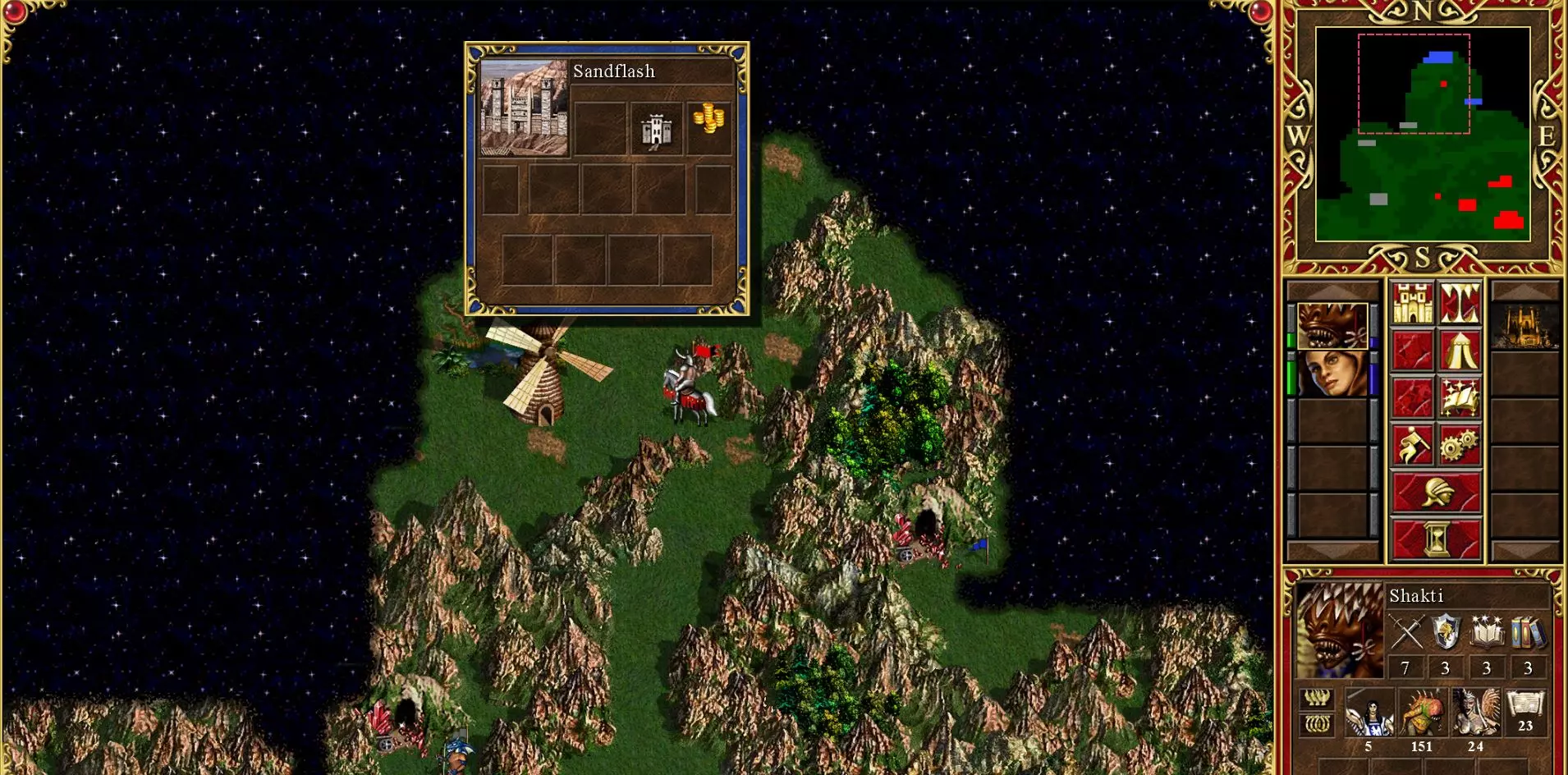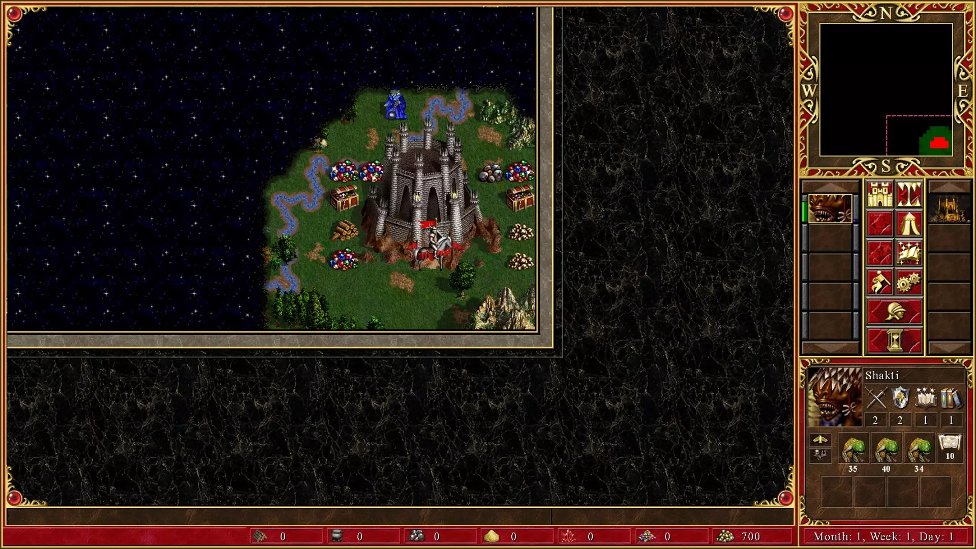第三周敌方英雄的军队 方法二:大天使复活 我们知道穴居人快攻非常有效。但如果你想玩一场漫长且复杂、在后期压制AI的游戏,这个策略就适合你。 大天使复活策略会用到通过阿德拉解救的天使军队,但更进一步。普通天使虽然极其强大,却缺少一个非常重要的技能:复活。选择城堡阵营后,我们可以将5个天使升级为大天使,解锁复活技能,为你的军队提供巨大的制胜条件。 此方法速度较慢,且要求你开局的回合必须高度优化。关键是建造一座城堡城镇,尽早建造升级后的荣耀之门。你需要在第一周快速抢占矿石和木材矿,第二周抢占稀有资源。然后,招募5个监狱天使并将它们转化为大天使,这样就能比通常情况早得多拥有8-10个大天使的部队。这支大天使部队能让你在战斗中使用其特殊能力复活800-1000点生命值的阵亡单位。AI会优先攻击射手单位(远程),所以任何被击杀的射手都可以被大天使复活,仿佛从未阵亡过一样。这个玩法很有趣,因为初期进展缓慢,但如果策略得当,你会获得压倒性的优势。 由于城堡阵营不像地下城阵营那样拥有强大的早期战力,所以这个策略也需要更多时间。你需要占领资源矿并收集资源堆,以获取足够资源来升级荣耀之门。组建一支小型军队来完成这些任务需要时间,因为城堡阵营无法像地下城阵营那样在没有资源的情况下暴兵。 方法三:圣物建造与存档 利用圣物来建立对AI的巨大优势是可行的,但如果不使用存档或地图编辑,其效果会非常不稳定。圣物的默认搜索范围是8格半径区域,在游戏中可能需要数周的回合才能通过挖掘找到。你可以在开始搜索圣物前保存游戏,找到后再读档,因为圣物的位置从游戏开始就不会改变。我个人没有使用这种方法,因为感觉这像是通过作弊来揭示位置,但它确实有效。