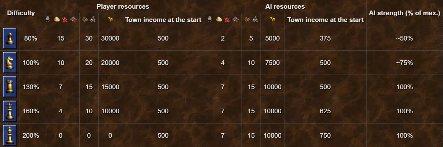 【英雄】成就要求在不可能难度下赢得10张地图。不可能难度开局没有金币或资源,这使得初期回合难度大幅提升。不过,仍有多种策略可达成10场胜利。本指南涵盖4种达成方法,其中包括2种无需作弊或利用漏洞的方式。 bonus起始资源表 以下是各难度的起始bonus资源表。如图所示,在不可能难度下,默认起始bonus资源为零。