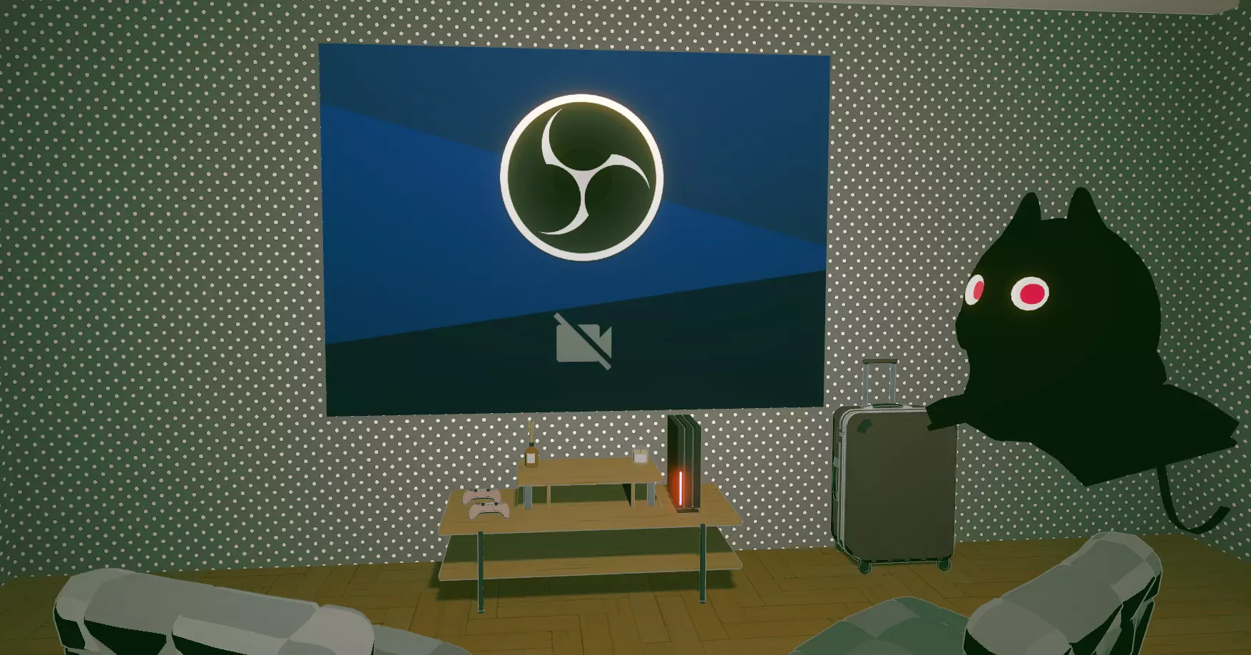 当你准备好画面后,进入游戏Gogh。选择带有Stream功能的对象进行直播,此时会出现摄像头选择,选择OBS Virtual Camera。点击开始直播,之后你会看到类似这样的画面。