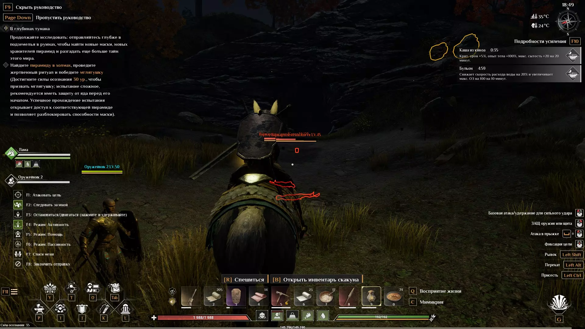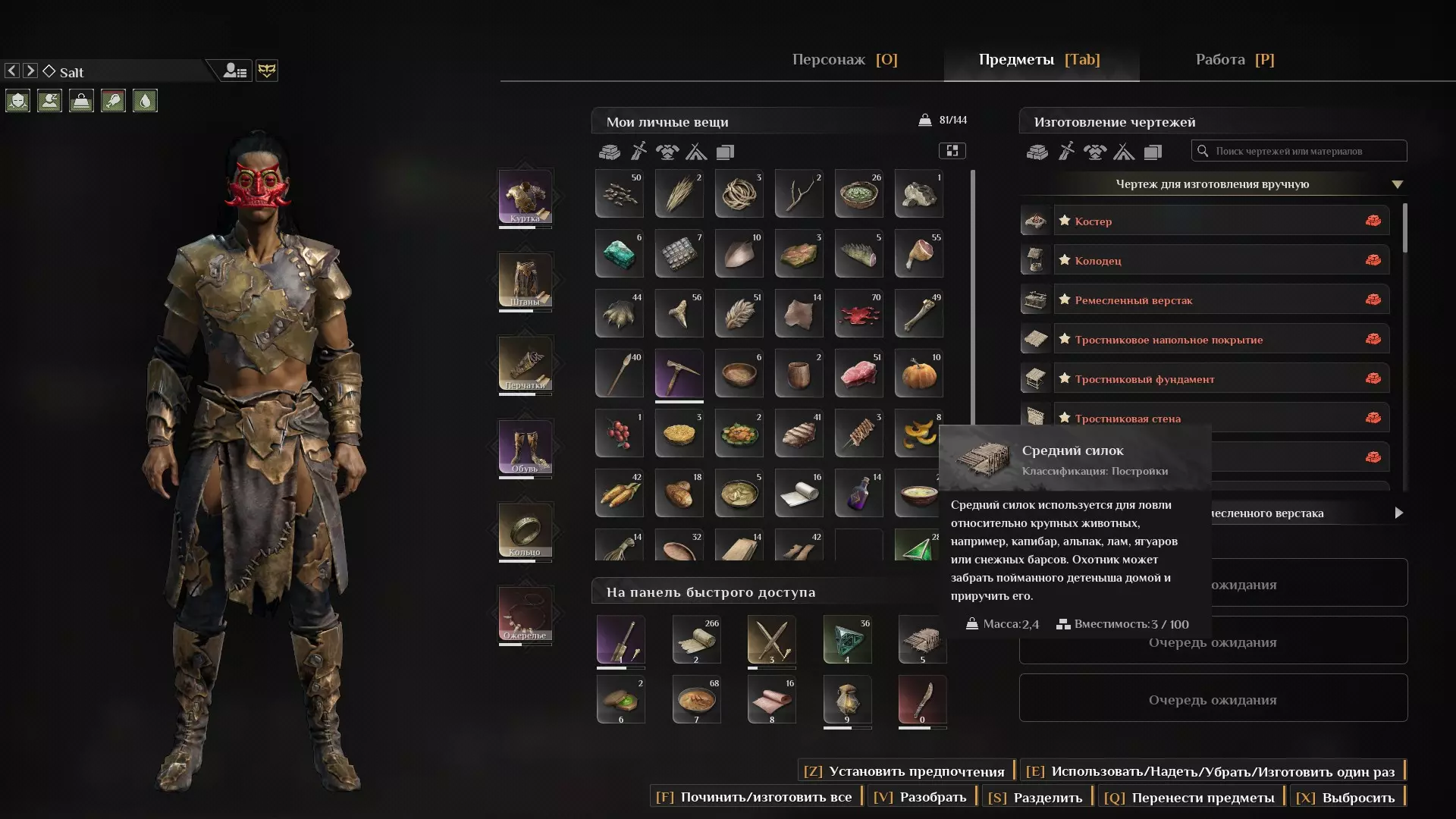 不建议穿过沼泽,那里有剧毒。如果一定要去,要避开青蛙,并且尽快跑到岩石那里(岩石处已经没有毒了)。 不要在有毒沼泽中停留,否则如果没有防毒保护,你、同伴以及宠物都会死亡。 另外,可能需要一些防暑保护(但不是必需的)。 如果不知道在游戏中该做什么? 提升意识等级。收集绿色宝石并解锁面具节点。 收集稀有NPC(并升级他们)。 计划制作更好的武器、盔甲和工具。 建造自己的农场(有雄性和雌性,它们会自行繁殖)。 之后我暂时也不清楚:) 如何让NPC在清理营地时不在营地复活? 如何让NPC在清理营地时不在营地复活?这他妈的可能会成为一个问题,尤其是在清理营地的时候,突然不知从哪冒出来十几个NPC,而且全都开始攻击你。 对于单人游戏: 目前,除了可以提前知道重生时间并避开它之外,单人模式的玩家还有另一个临时解决方案: 点击主菜单中的【继续游戏】。 点击【额外设置】。使用右侧的切换按钮开启【PVP设置】并进入游戏。 这样一来,当玩家角色仍在军营/堡垒的范围内时,位于内部的敌人将暂停复活,直到玩家完全离开军营/堡垒区域。 如何在游戏中开启控制台命令作弊功能? 如何在游戏中开启控制台命令作弊功能?目前在单人游戏中,控制台和作弊码均无法使用。 但可以通过以下方式调出管理员控制台: 1. 在Steam中右键点击【灵魂面具】,选择【属性】。在【启动选项】部分的下方输入框中输入:-adminpsw=123(如果需要,您可以将123修改为其他任意数值)。 2. 启动游戏并以普通模式进入您的单人世界。 3. 打开控制台并输入:GM key 123。在下方框中输入123或您之前使用的密码,然后点击“成为管理员” 保存初始角色成长数据 - 保存初始角色成长数据 可勾选激活的选项 - 保存初始角色成长数据 - 保存初始角色成长数据 即: