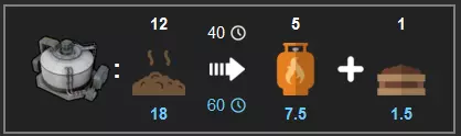 从该交易中我们可以推断出1硫磺=4.5淤泥。若18淤泥=7.5燃气,则可计算出约1淤泥=0.41燃气,这意味着1硫磺=1.84燃气。一艘配备8个模块的大型货船每次航行可进口多达2160淤泥。2160淤泥×0.41燃气=885.6燃气。燃气锅炉每60秒需要72燃气来产生48蒸汽。885.6燃气÷72=12.3分钟。因此,在最大化的涡轮机/发电机设置下,每船货物可提供15兆瓦的电力,持续12.3分钟。这就是我在上一个岛屿上使用该燃气的方式。你可以将二氧化碳泵入石灰石中,或将其回收为石墨,但无论如何,这都能减轻你岛屿上的污染,并为熔炉节省煤炭。但还有更多内容: