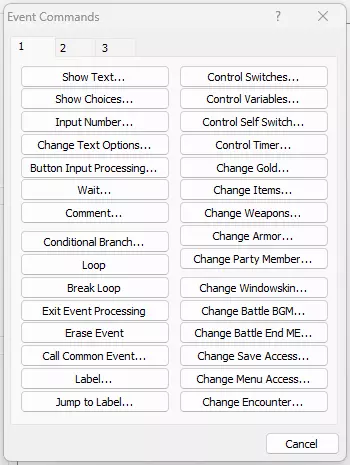 在【事件命令列表】(LoEC)中,点击空白区域以调出事件列表对话框。
