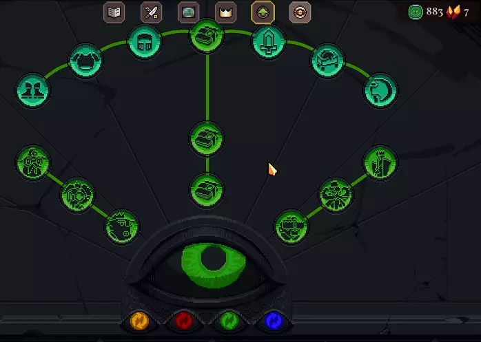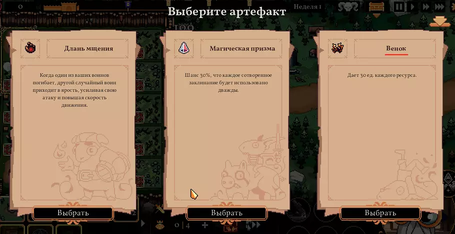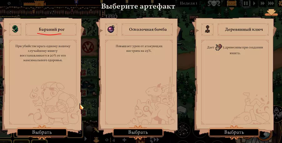 如果选择圣物,那么要么选【花环】,要么选【公羊之角】。【花环】能帮助快速摆脱金币负数状态,通过出售面粉(30×3=90)和钢材(30×3=90),最终能获得+60金币。根据国王的不同,甚至可能足够用来升级【洞察】(优先升级【洞察】比花费75金币建造第一个金矿更好)。