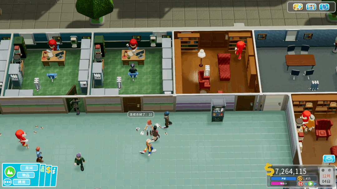 下面,让我们开始狙击手的成长之路吧! 第二步:锦囊妙计,百发百中! 1. 一个成熟的狙击手来到了医院,按下了暂停键…… 让我们选择一个视野较为开阔的全科诊疗室或者病房门口。如果摆放的物品太多或是诊室太密集,可以暂时出售一部分(毕竟只要善用存档数据,你就拥有可以回到过去的机会)。然后拿起第一步里我们说过的那些连眉怪容易藏身的物品,掀起他们的天花板,给他们带来猝不及防的光明!