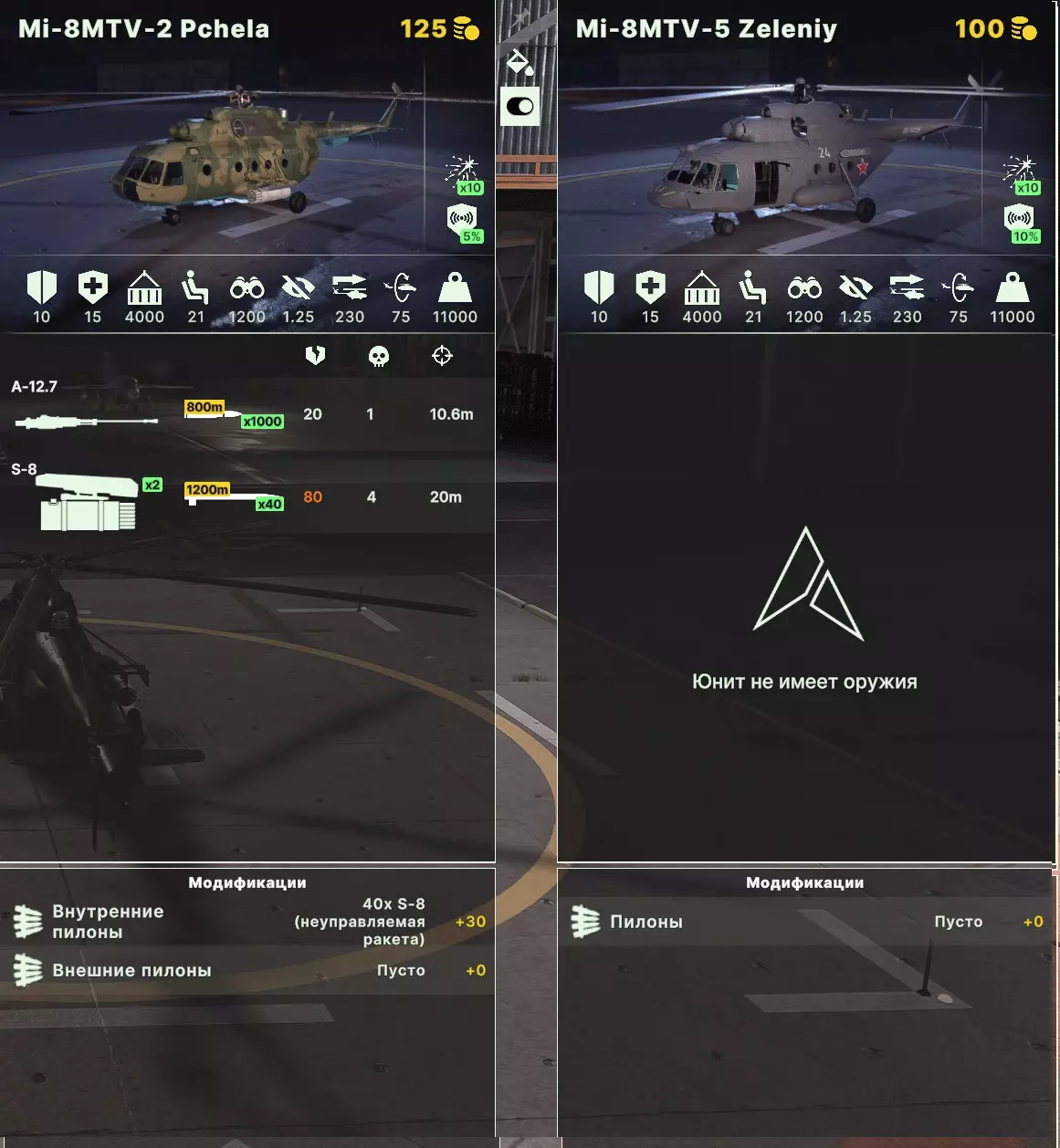 米-28“米哈伊尔”和“猎人”是不错的直升机。它们具有良好的使用多样性。可以通过挂载更多数量的导弹,打造出优秀的对地攻击或防空直升机,性价比不错,除了配备LMUR导弹的版本(不过也可以选择该版本尝试一下——大胆去做吧)。