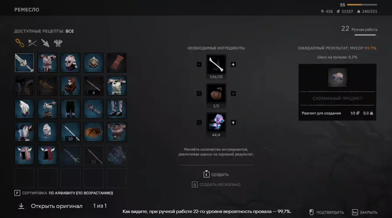 前往铁匠铺的最右侧区域,那里有一个磨刀石,可以在上面锻造武器。 锻造该武器还需要: 4块玛尔石; 20根骨头; 您刚刚从铁匠那里获得的碎片。