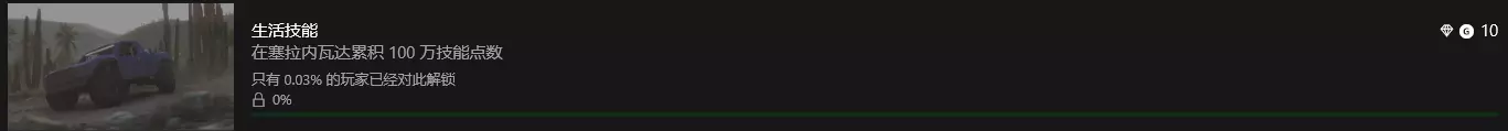 生活技能:一次性积攒100万技能分数即可。