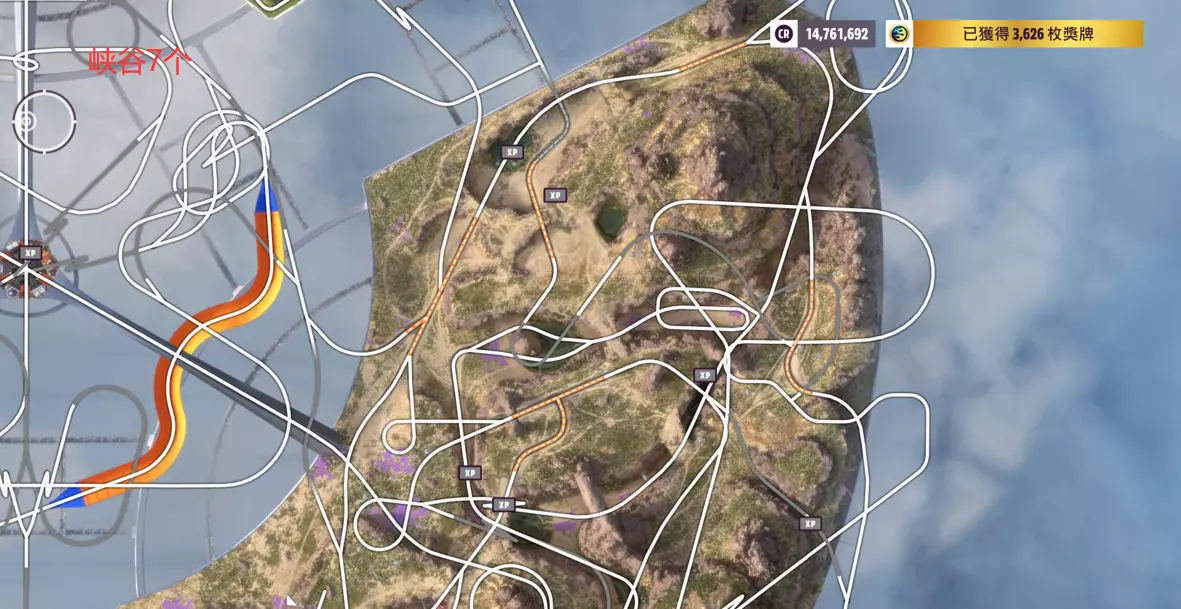 极致敏捷 已赢得所有赛事 广告牌,森林9个,峡谷7个,雪地8个,前哨站1个,都需要从橙色道路出去找
