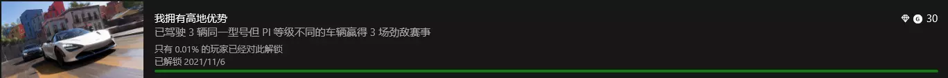 我拥有高地优势 注意是用三辆同车厂同型号不同等级的车完成,而不是用一辆车去改装,据玩家们反映这个成就需要跑环道