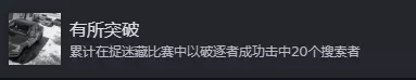 有所突破 这个成就是一场内使用躲藏者技能命中20次,建议组队