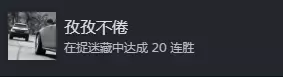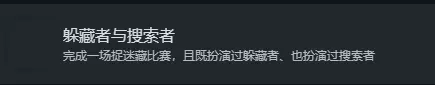 捉迷藏(建议组队) 地势走向/扫街/深藏不露/躲藏者与搜索者/赏金猎人 这些成就不用太在意,自然会完成