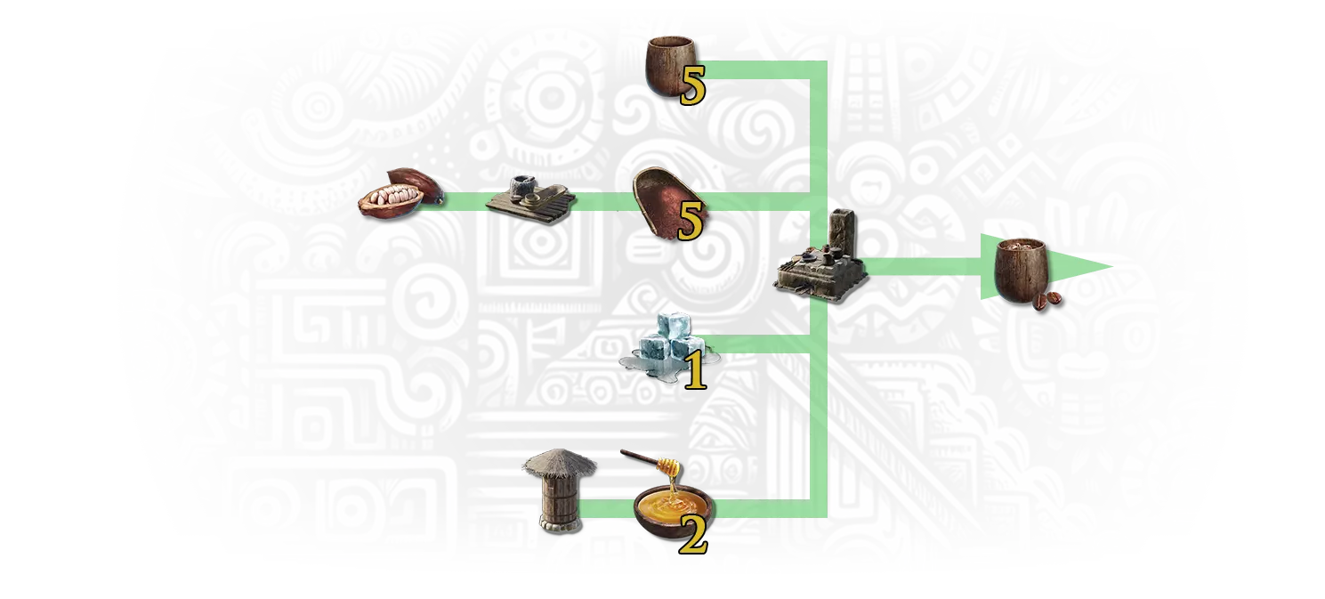 岩石上的喜悦 - 制作冰可可以解锁此旅行里程碑。 油炸南瓜圈可在工作台制作。制作它需要: 5个杯子 - 可制作或在敌对部落的箱子中找到; 5份可可粉 - 可在研磨机上从可可果中刮取; 1块冰 - 可在火山 biome 的敌对部落箱子中找到,或在雪山 biome 的水中冰层开采; 2份蜂蜜。