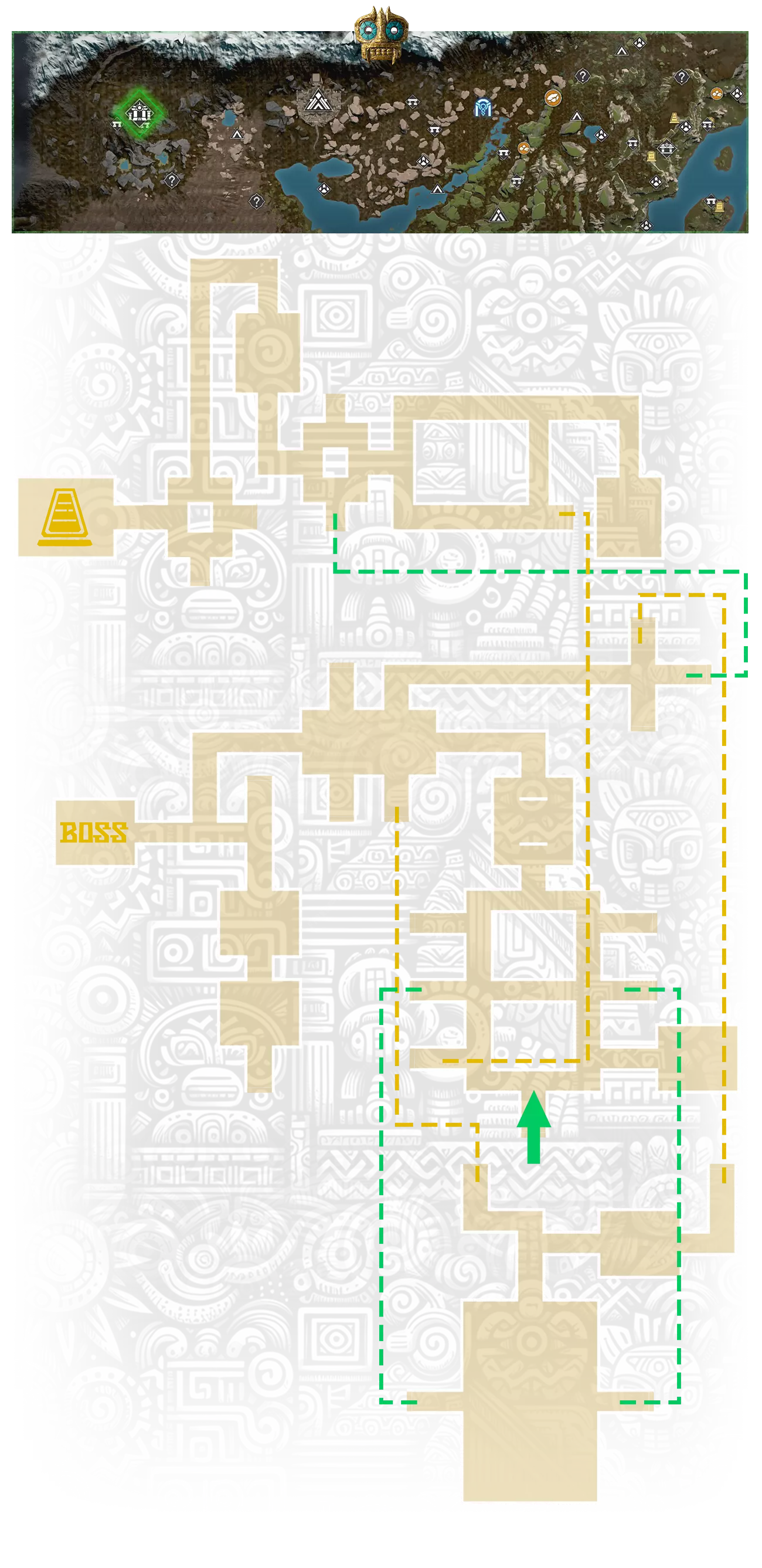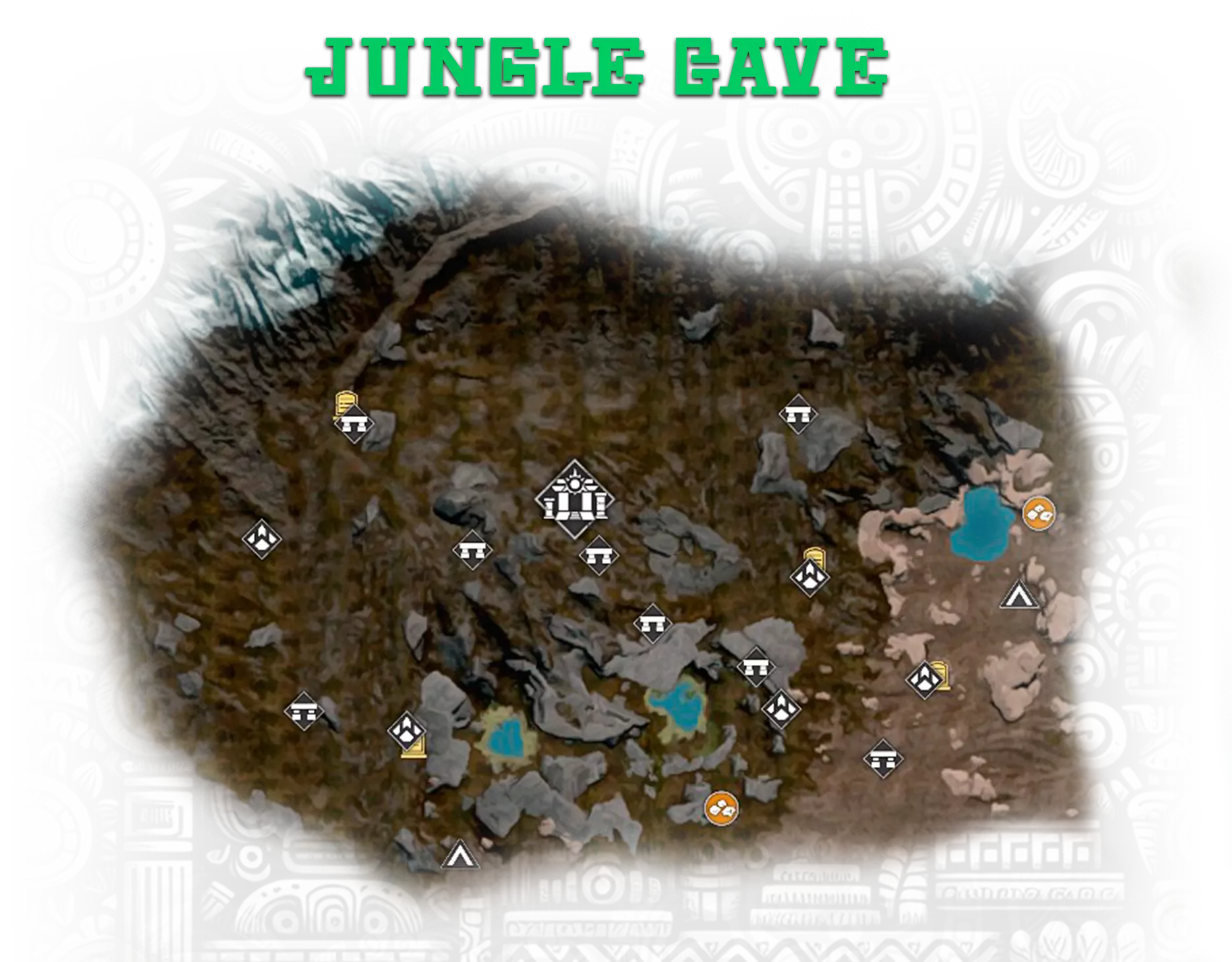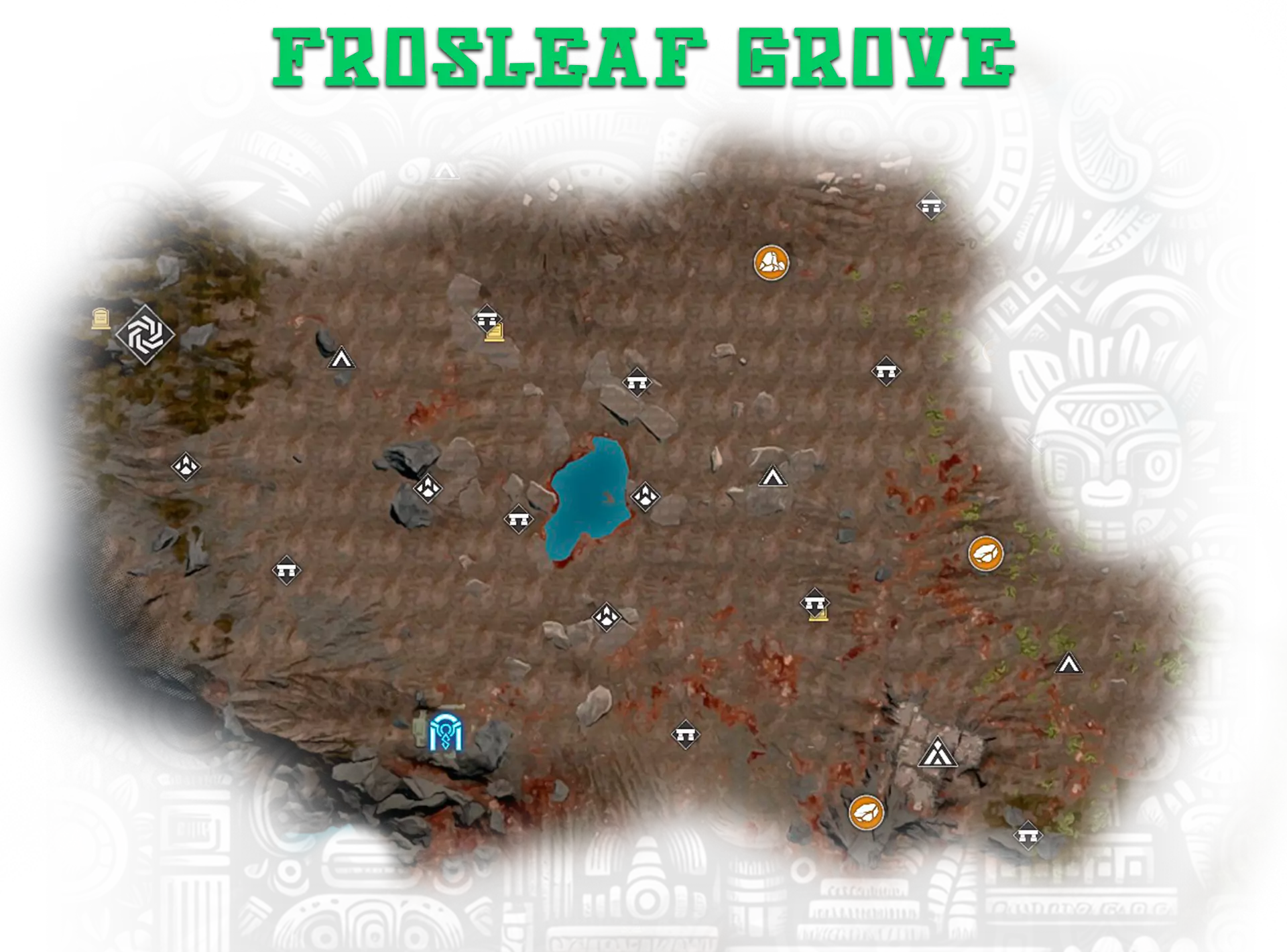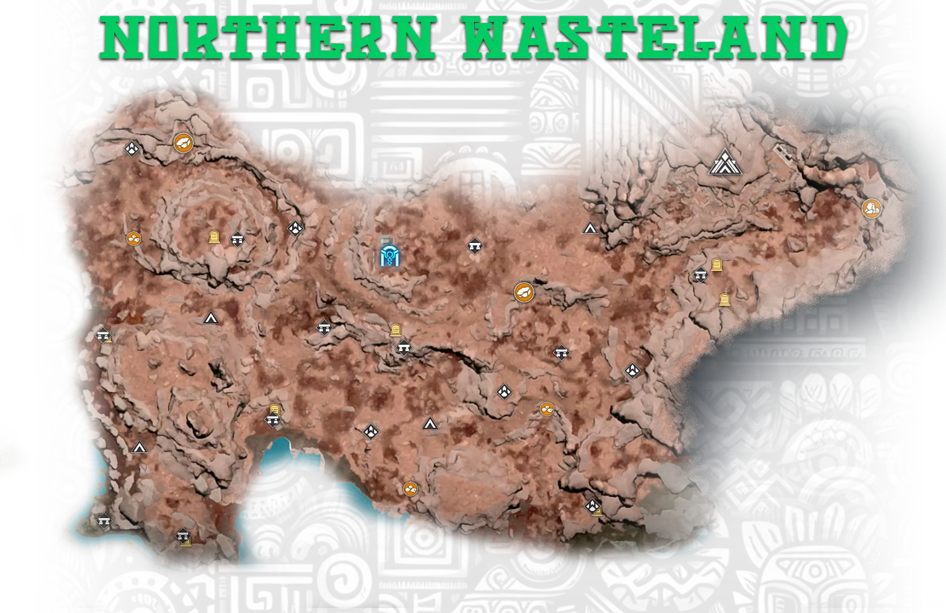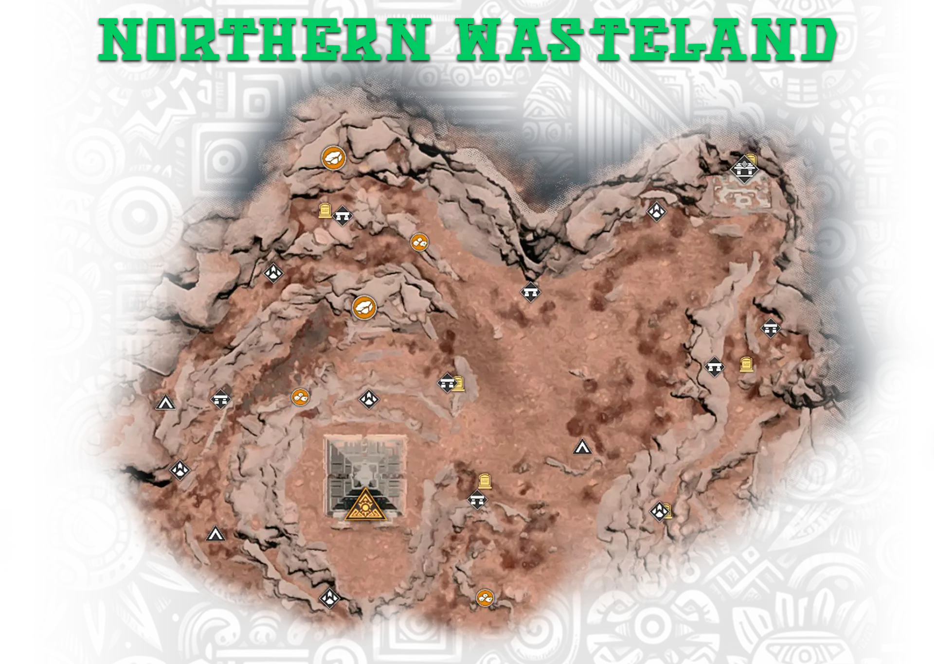 8-11. 地下金字塔,更多信息在【Hidden Pearl: Frost Canyon】成就中; 13. 金字塔正面的神圣石板; 17. 古代地牢,位于地下墓穴的废墟中。