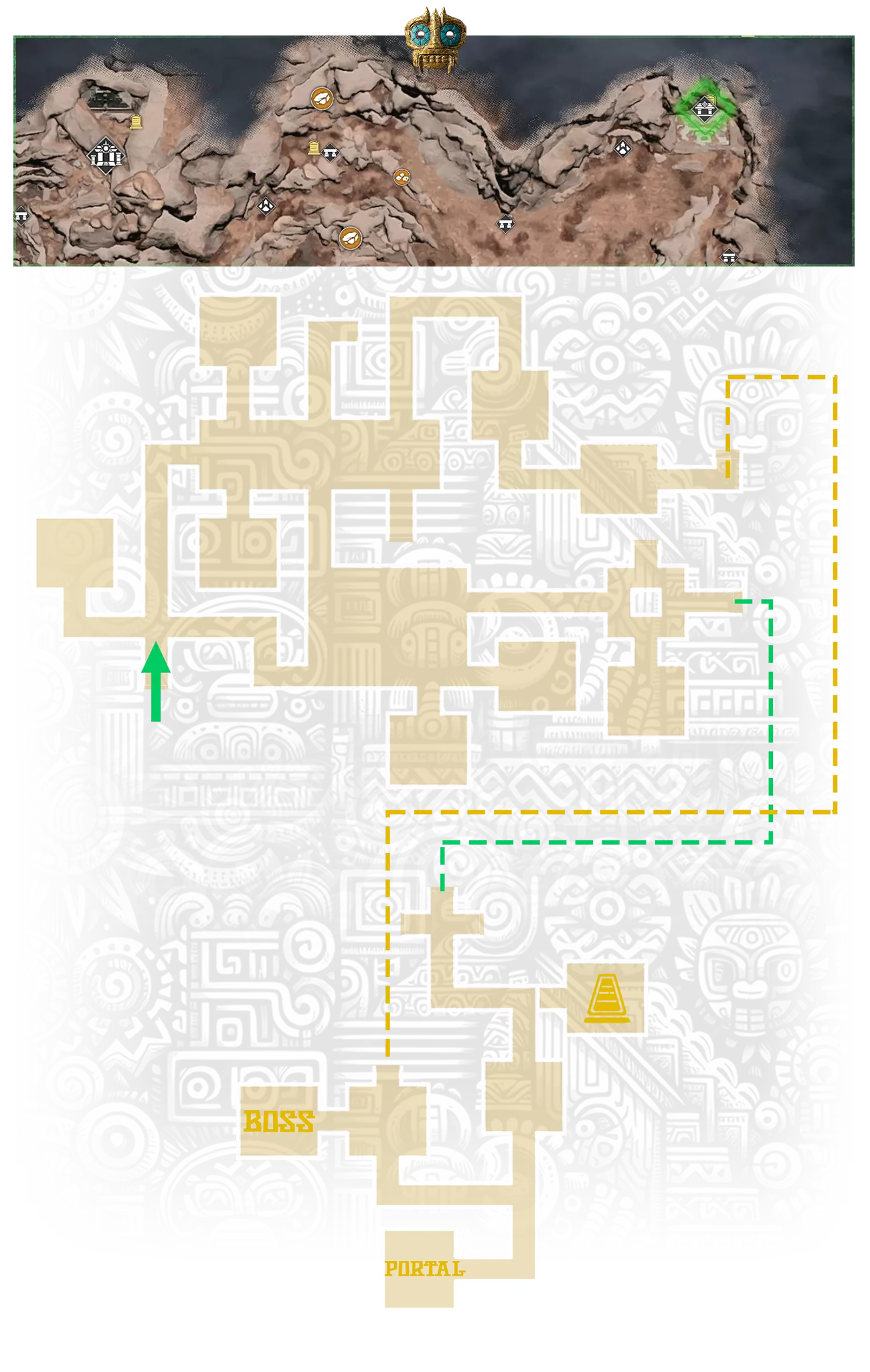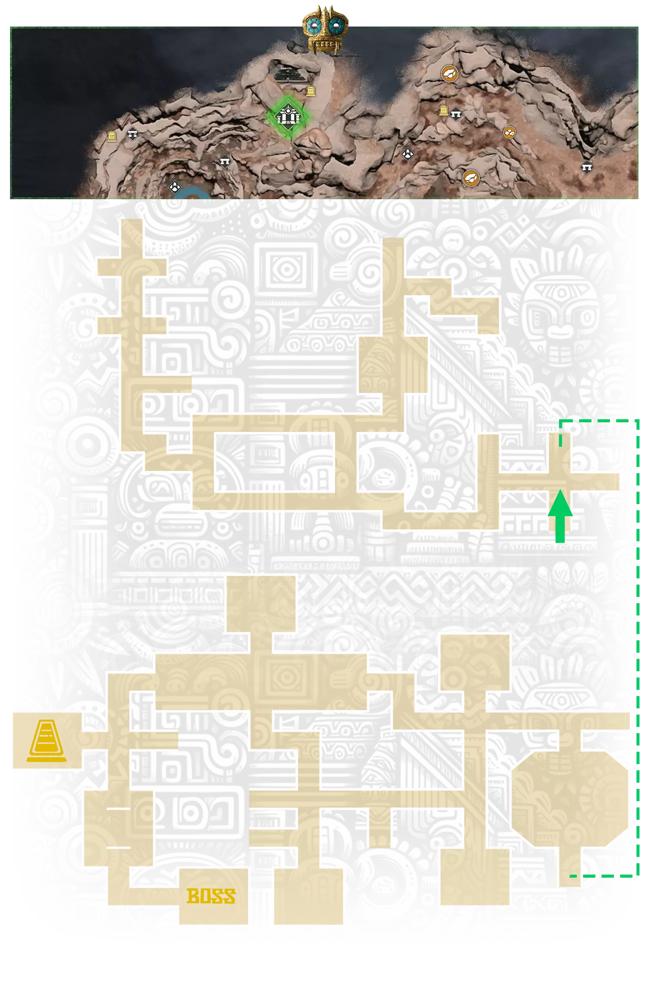 隐藏珍珠: 要获得此类别下的所有成就,你需要击败地下金字塔中的 Boss。这个 Boss 只能在高阶关卡中被击杀,因为这些地牢中的 Boss 都是机器人,不会受到你的武器伤害。地下墓穴由敌对部落守卫,金字塔中的迷宫由机器人守卫。所有地下金字塔都是一个迷宫。要到达地下金字塔,你必须首先穿过地下墓穴。 地下金字塔迷宫的标记: