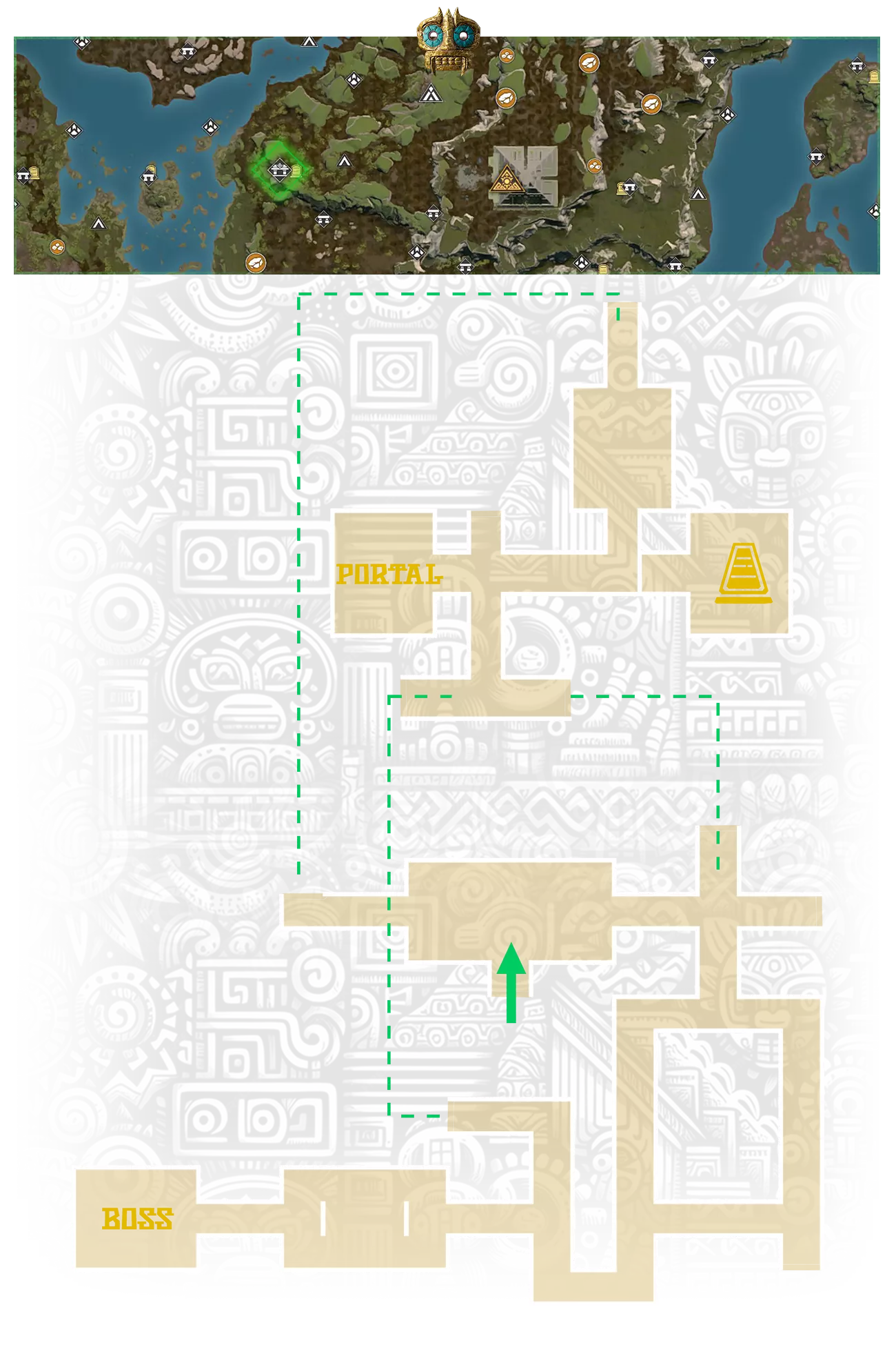 成熟的剑齿掠食者猎人 - 【冲锋!】:击败末日剑齿掠食者以解锁此旅程里程碑 位于北部雨林区域的第一座金字塔。所需感知强度:55。在祭坛上放置以下物品以召唤守卫并打开金字塔: 1. 10块稀有鲜肉 - 从任何精英野兽处获得。所有精英野兽的巢穴均已在地图上标记; 2. 5根稀有兽骨; 3. 5份稀有兽血; 4. 3个崇拜容器 - 击败部落突袭首领后可获得; 5. 1个大地崇拜容器。