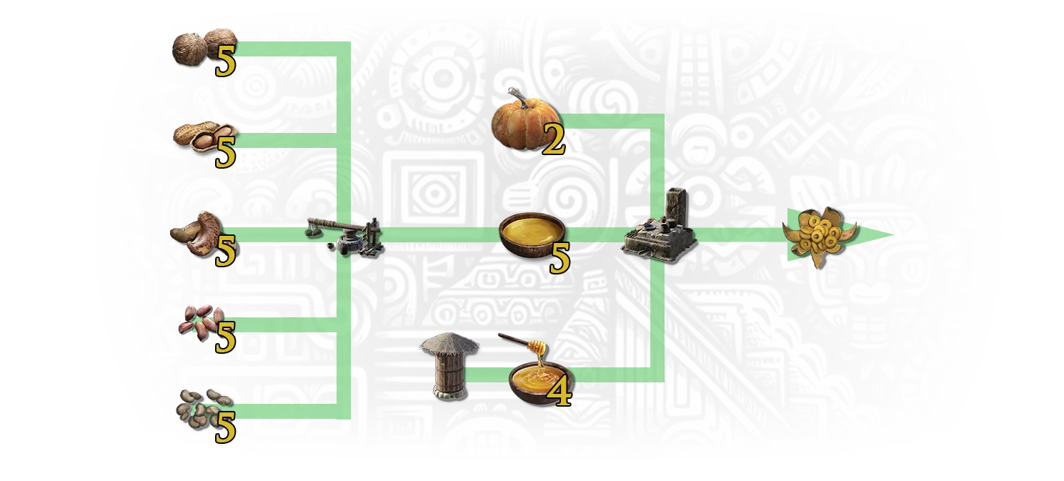 下午甜点 - 制作一份炸南瓜圈以解锁此旅行里程碑。炸南瓜圈可在工作台制作。制作它需要:2个南瓜;4份蜂蜜;5份食用油 - 可在其他部落的箱子中找到或在榨油机(青铜坑)处制作。