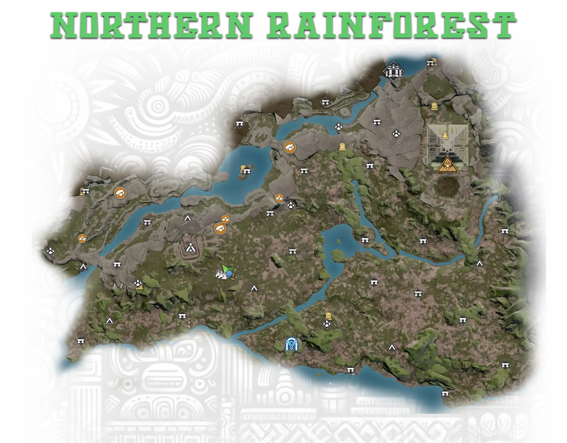 对手的骨矛与骨盾 - 击败狂怒剑齿掠食者以解锁此旅程里程碑 北雨林地区的第一座金字塔。在祭坛上放置以下物品以召唤守卫并打开金字塔: 5份稀有鲜肉 - 从任何精英野兽处获得。所有精英野兽的巢穴均已在地图上标记; 5根优质兽骨 - 从任何精英野兽处获得; 5份优质兽血 - 从任何精英野兽处获得; 2个崇拜容器 - 击败部落突袭首领后可获得。