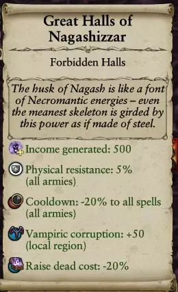 2. 操控弗拉德/伊莎贝拉时,在前5回合占领德拉克霍夫(抱歉,曼弗雷德)和滕佩尔霍夫。这将增加吸血鬼数量并获得金矿。如果运气好,还能与“光头”(指弗拉德·冯·卡斯坦因的别称)达成联邦。 3. 在纳伽什扎尔南部山区有纳伽什的遗骸——派遣探险队前往那里。除了丰厚奖励外,还能获得一个无敌据点,以备失去希尔瓦尼亚时使用。