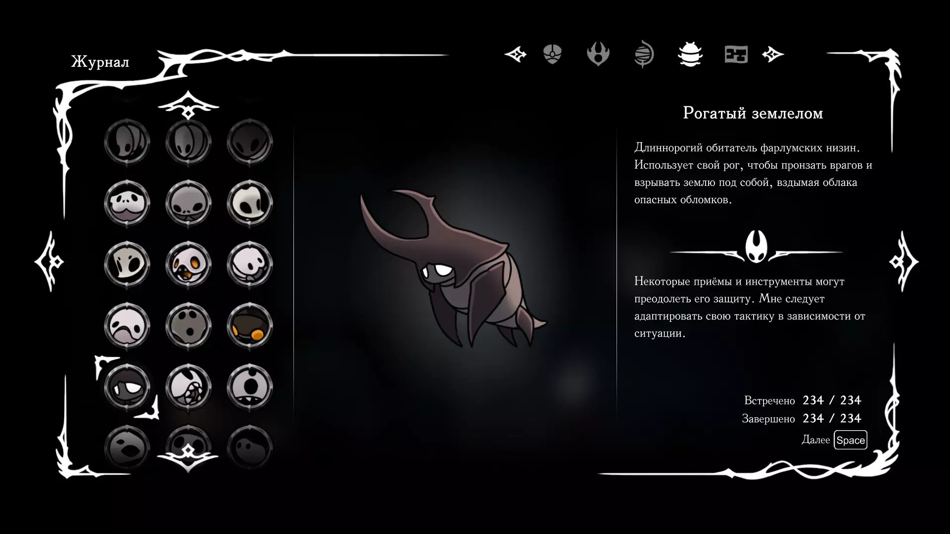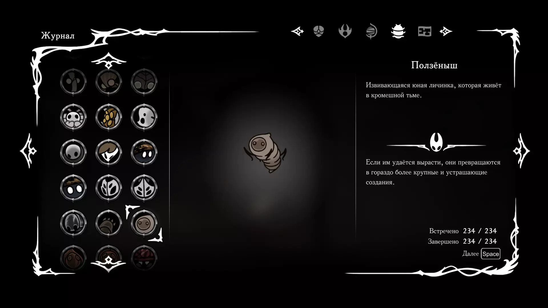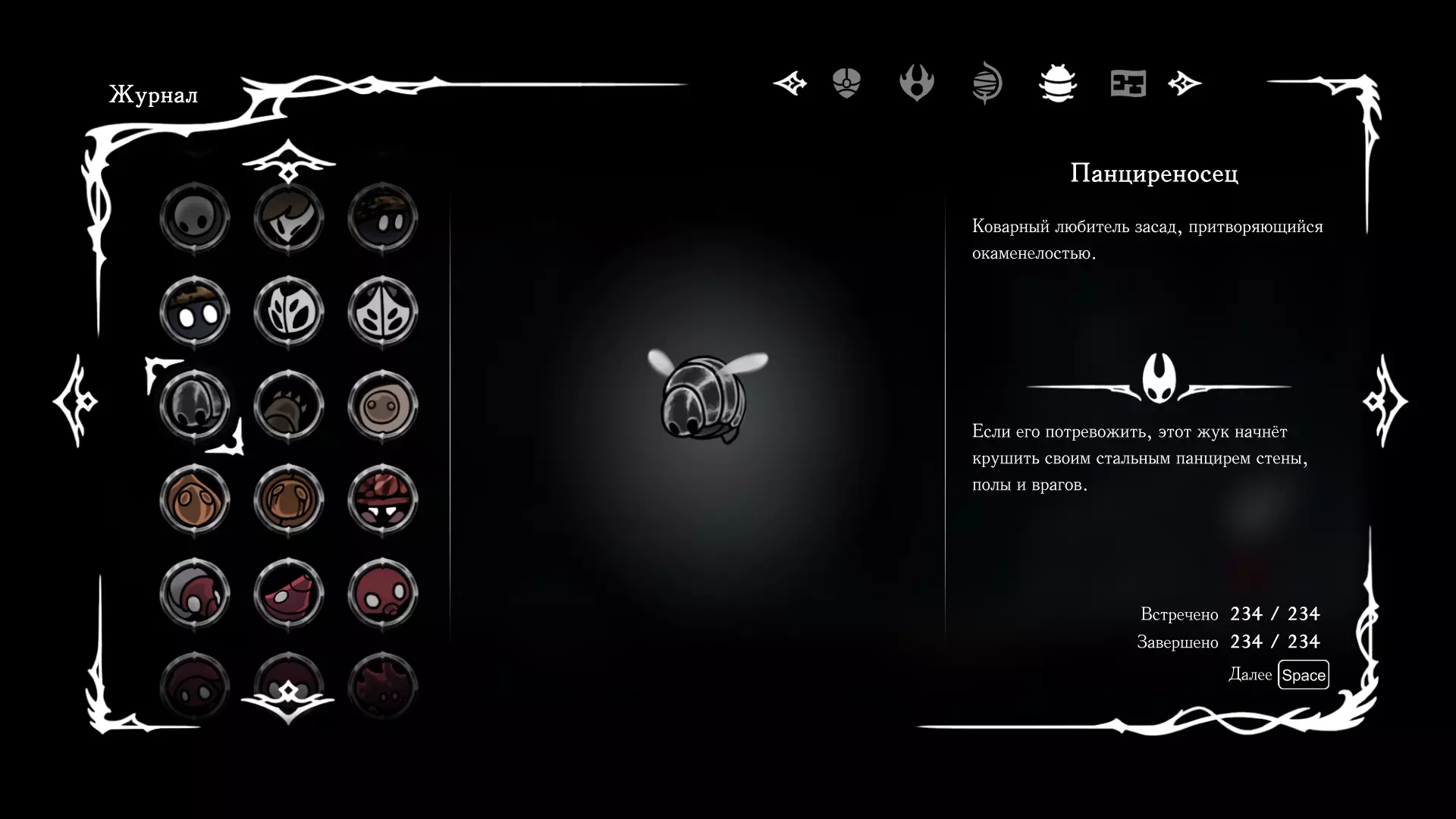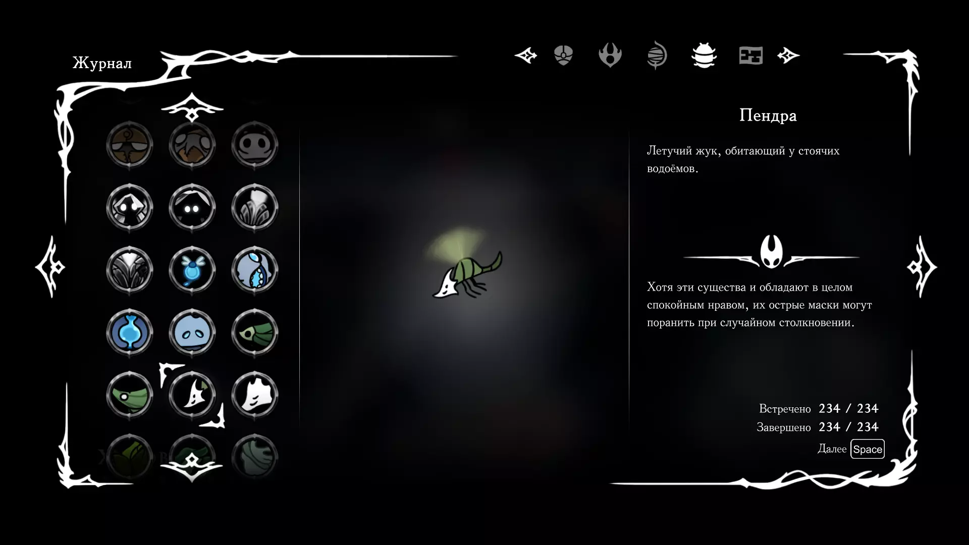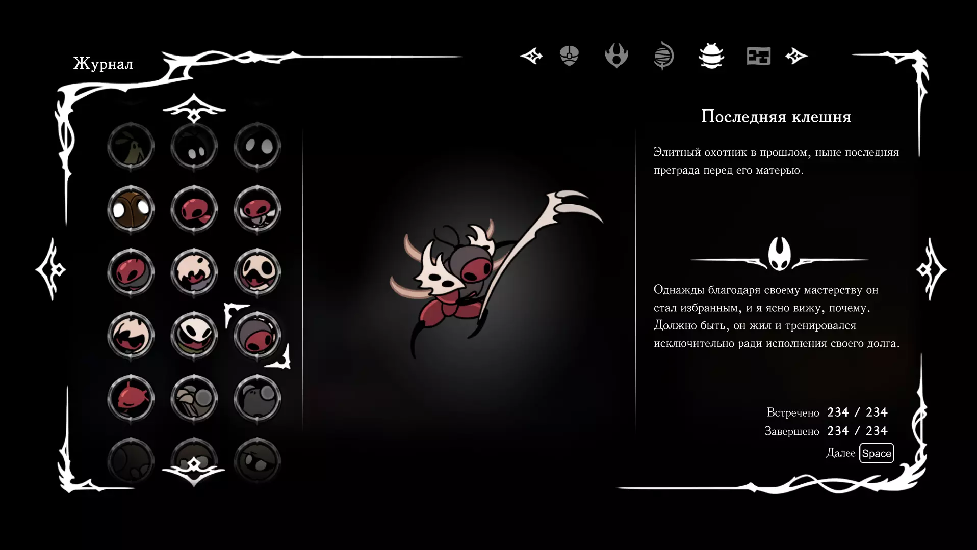 《空洞骑士:丝绸之歌》猎人日志填写指南,包含每个敌人/生物的位置及获取努乌纪念品的方法。信息将持续补充更新。 注意:大多数敌人在进入第三幕后会停止在原有位置刷新。例如,第三幕中水塘生物的生成数量从两三个变为单个。每次为了一个怪物都要跑到长凳那里,这种体验可不太好,所以建议在进入第三幕之前就立即填写日志。可以按下Ctrl+F键,输入你需要的怪物名称来查找。【沙克菈和加蒙德并非日志必需怪物】! 【回忆中的怪物,只要你击败了回忆中的首领(例如韦尔丹尼亚),就会自动记录到日志中】!如果找不到某个怪物,可以在评论区留言。我为这份指南花费了大量时间。【苔藓洞穴】